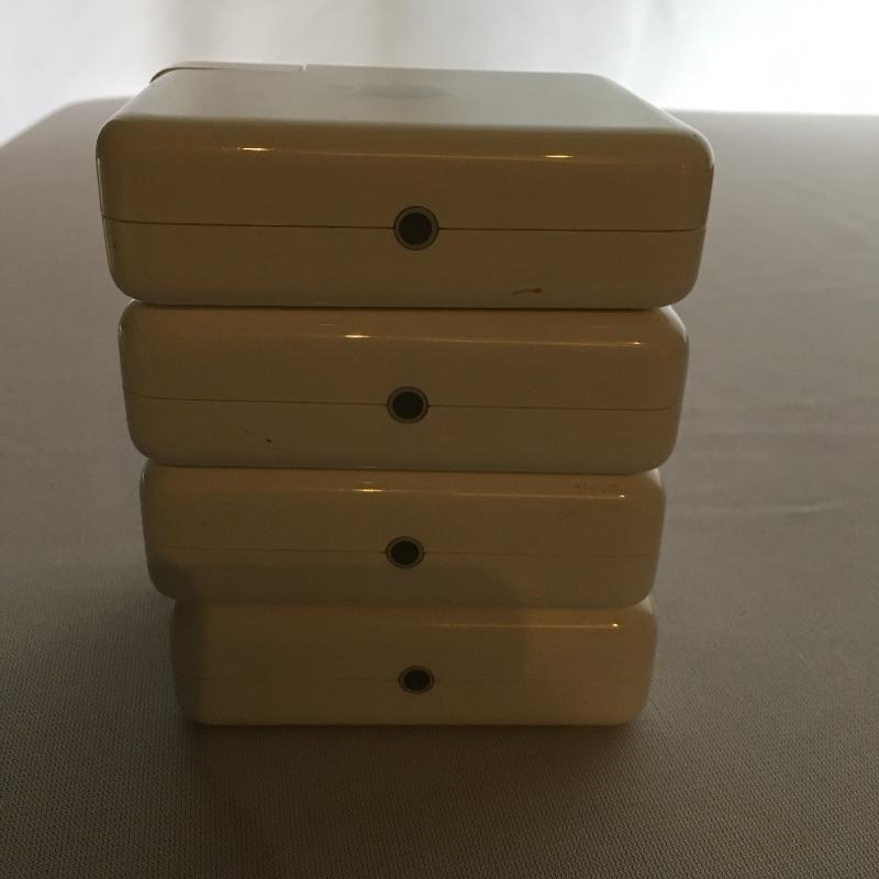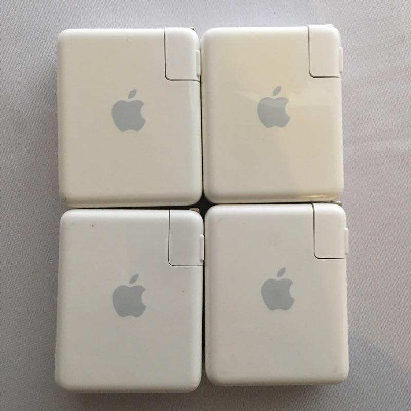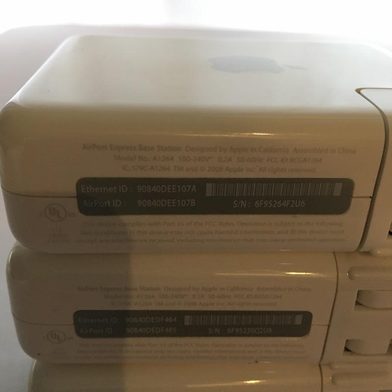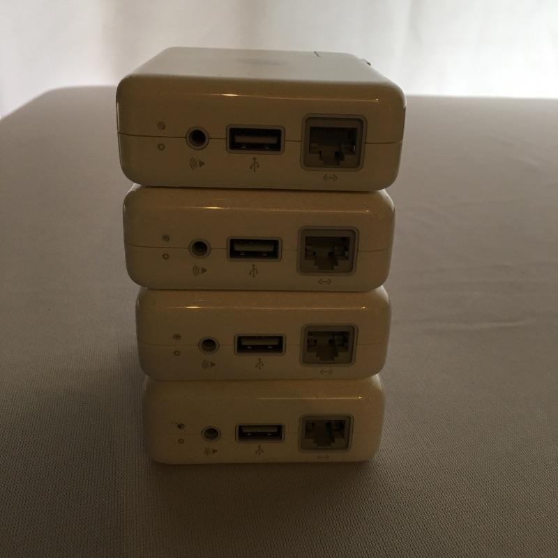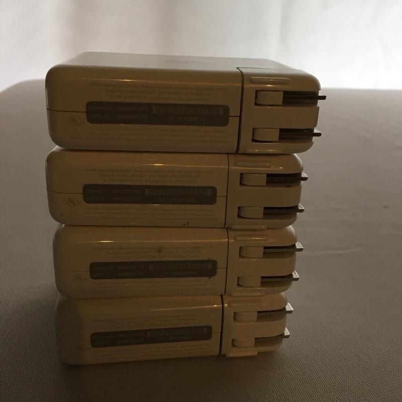 Apple Airport Express Stations. Lot includes four model # A1264 Airport express stations. All four powered on when tested, but have not been tested as routers.