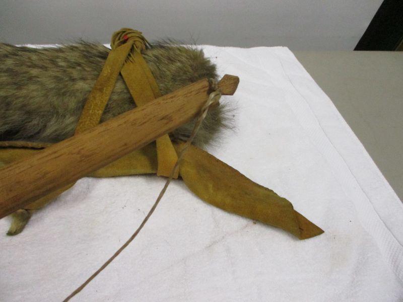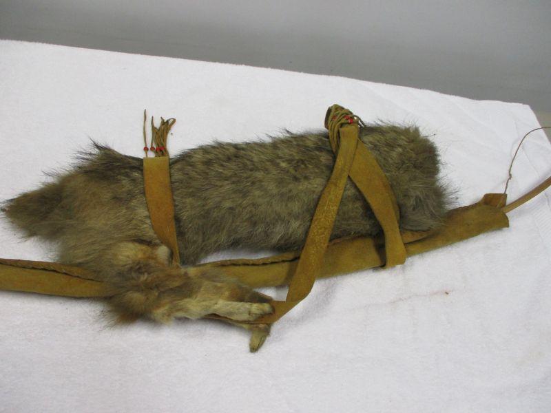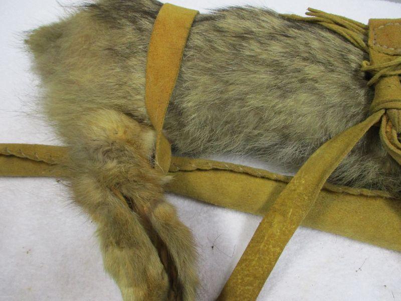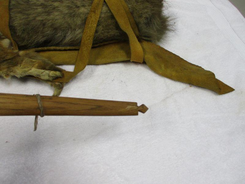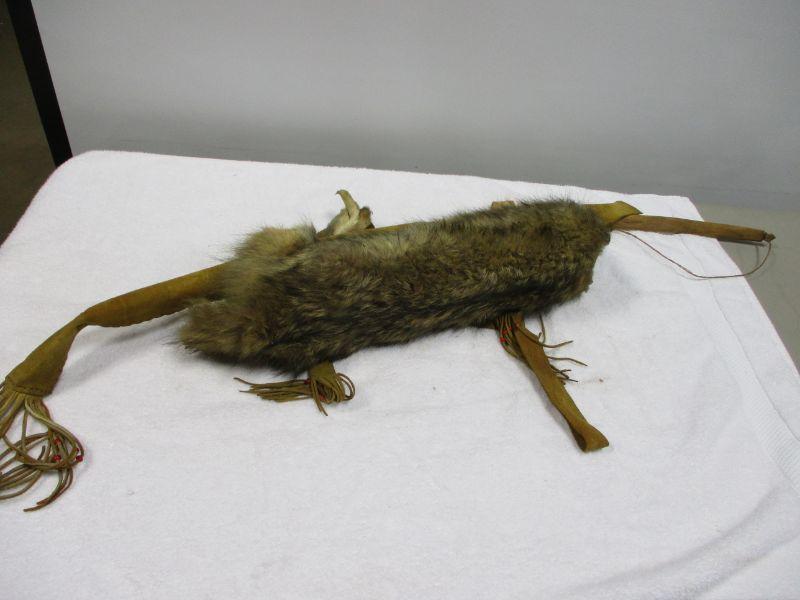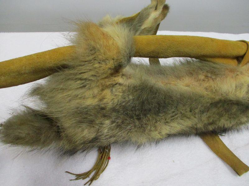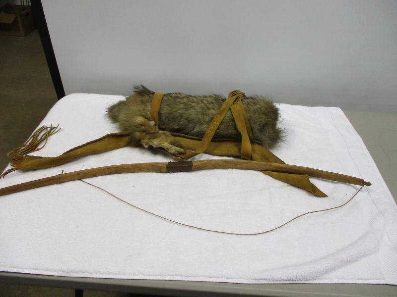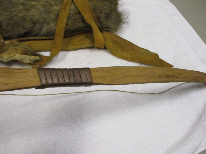 Lot 81 -Wood Carved Bow With Animal Pelt Quiver 40" No arrows