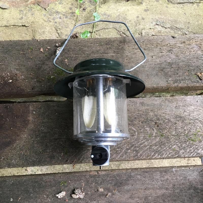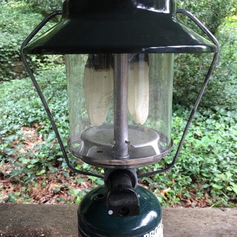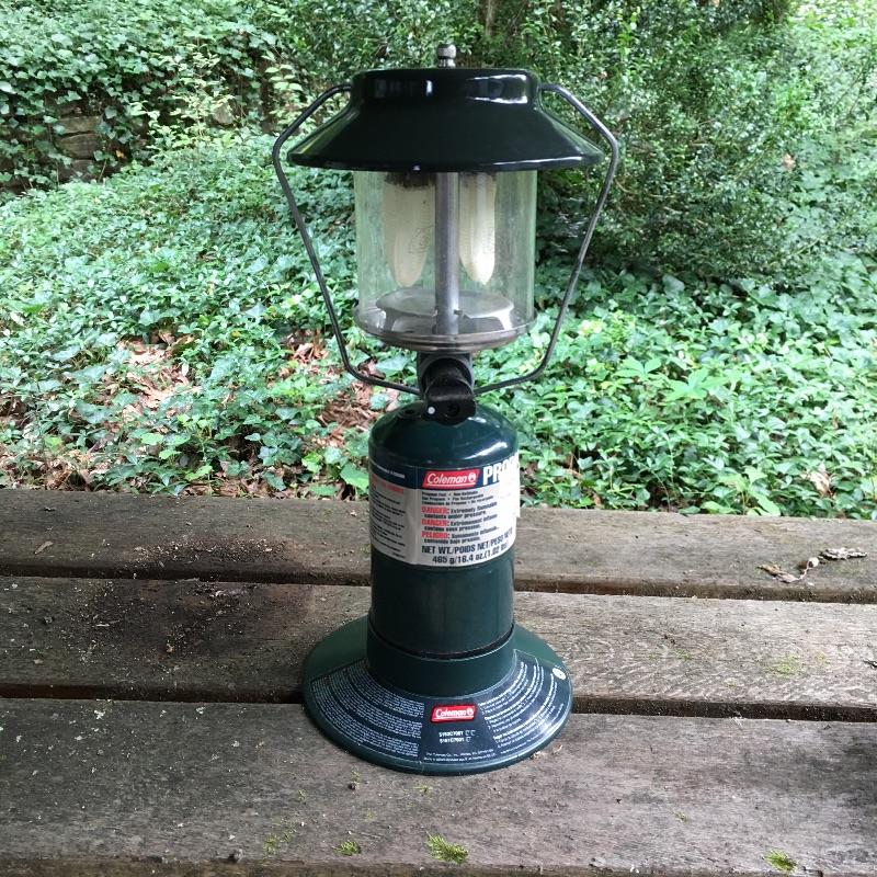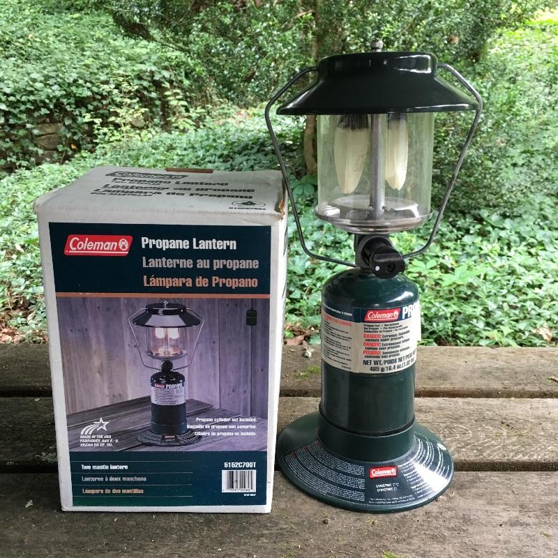 Coleman two mantle propane lantern. Be ready for your next camping trip or just out in the garden when you are barbecuing. Lantern with propane cylinder measures 7.5”D x 17” tall.
