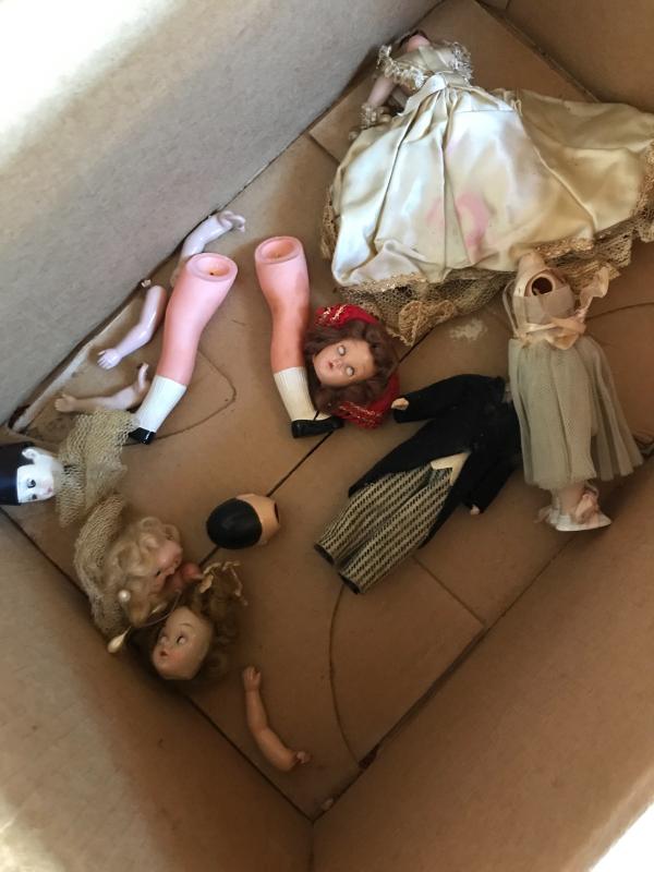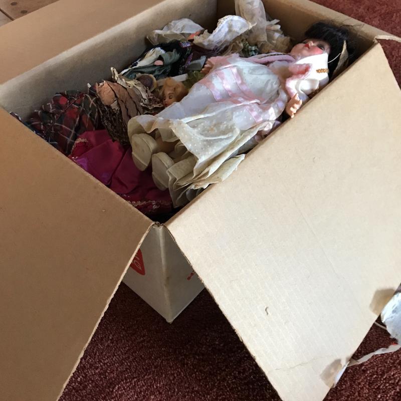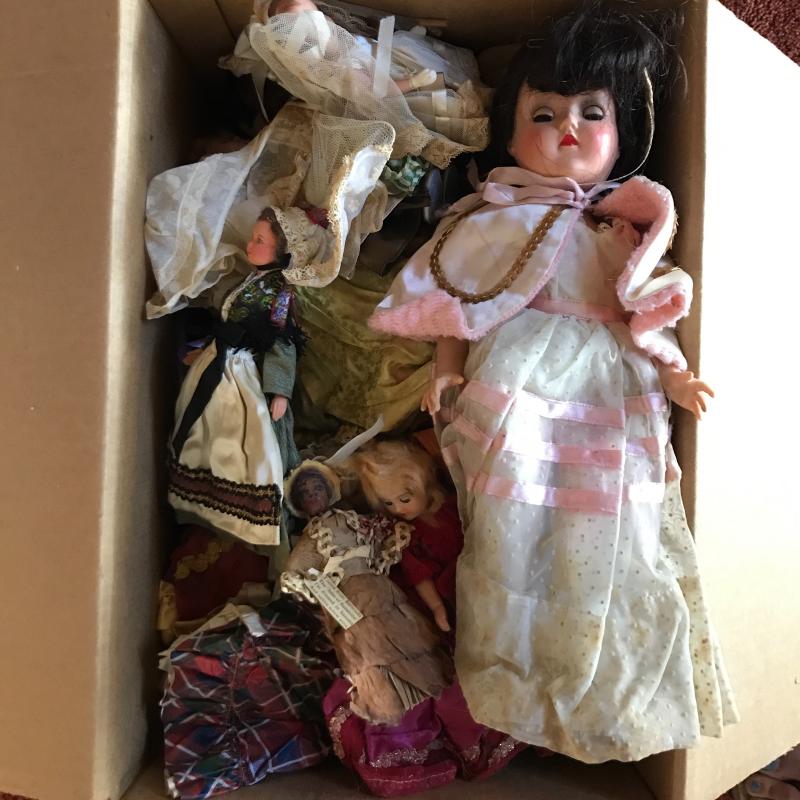 This lot includes a box of vintage dolls. Most are not in good condition but could be brought back with a little love. Some are gone for good and could be used for parts. The tallest doll is approximately 14.5” tall. Photos are of most all of the dolls and most did not have any visible manufacturer marks. Shipping available.