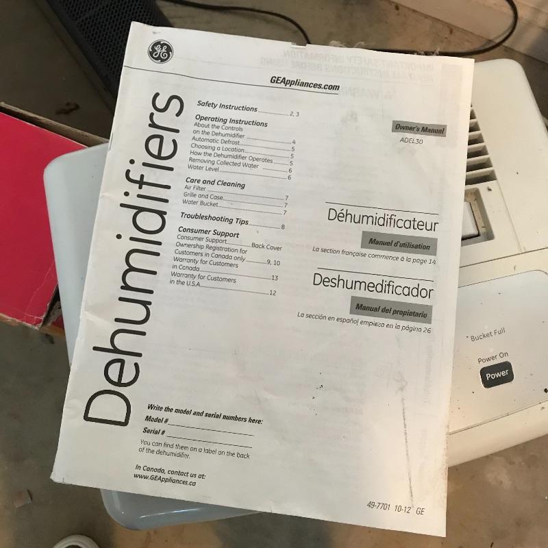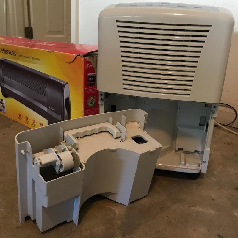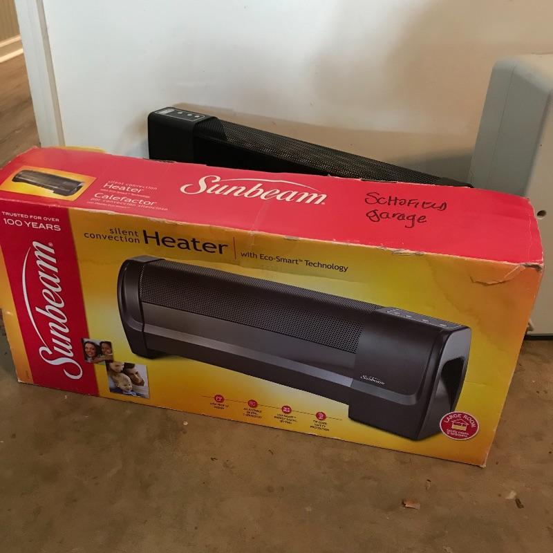 Two great necessities for a basement or shop. GE ADEL30 dehumidifier with a variety of settings to customize your environment. Next, a Silent Convection heater with Eco-Smart technology by Sunbeam. The space heater comes with its original box and looks barley used. It measures 27.25” x 5” x 11”. Both appliances worked when tested. Local pick up only.