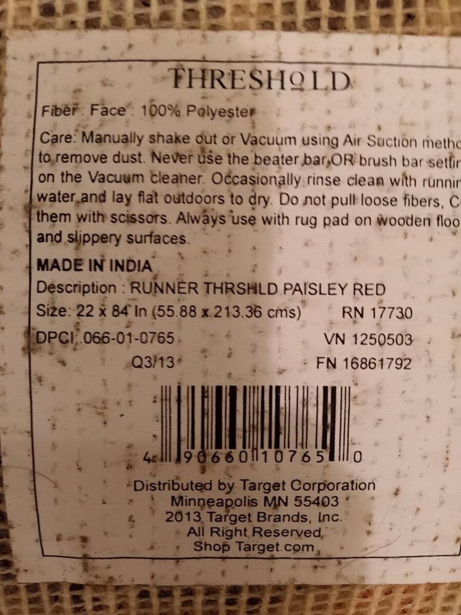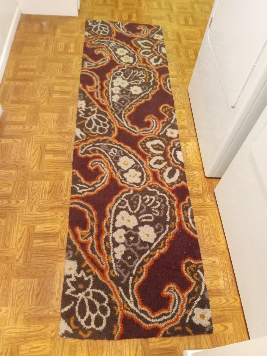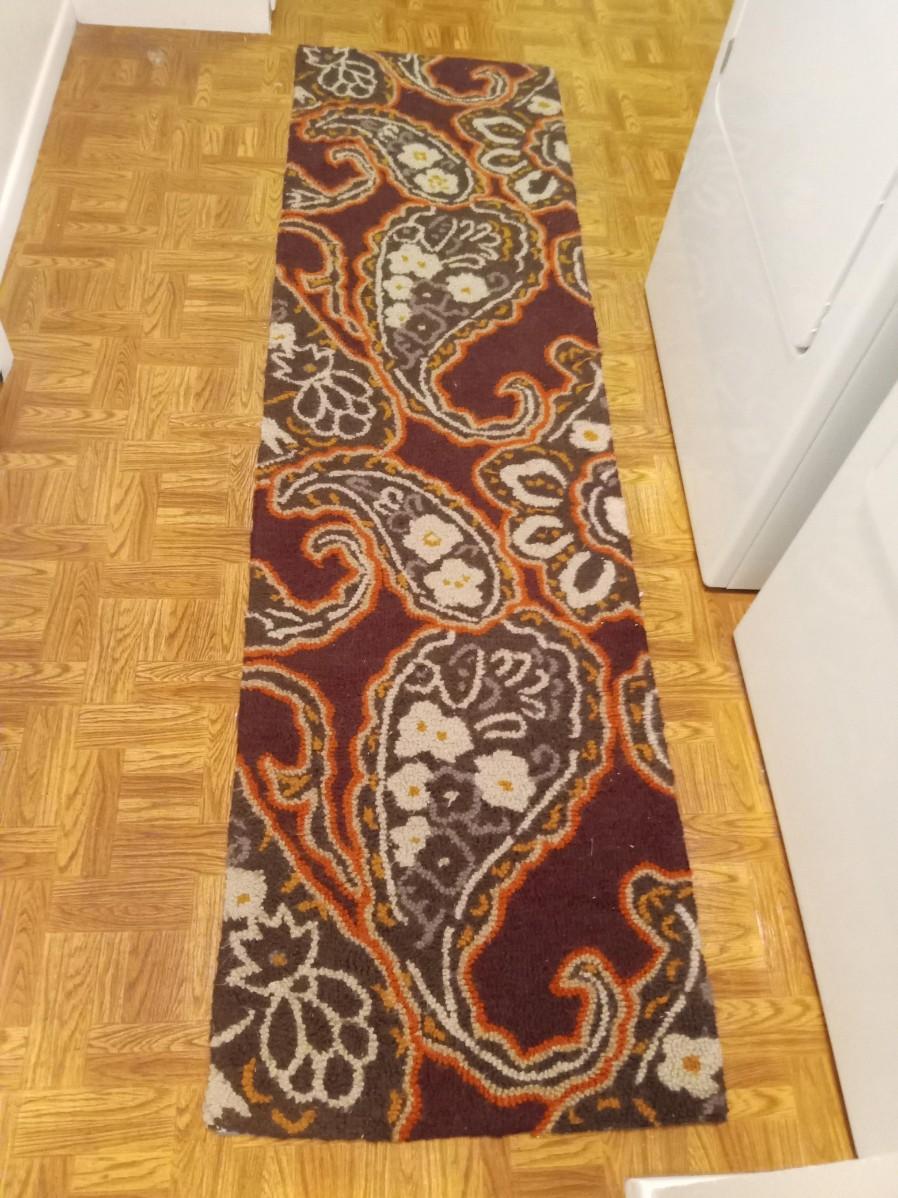 THE RUG IS OF GOOD QUALITY AND IN GOOD SHAPE, IT MEASURES 22 X 84