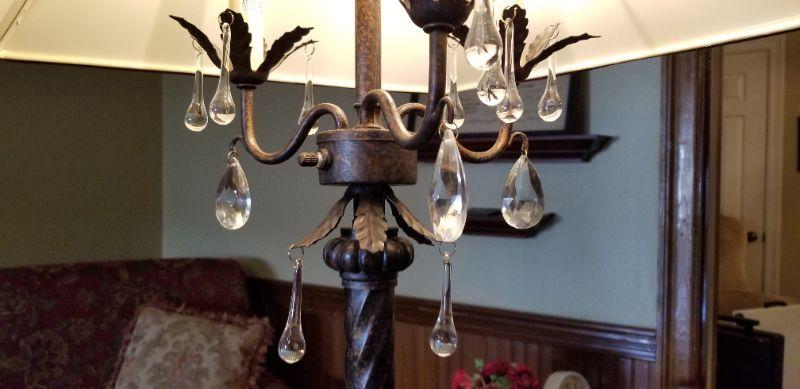 Lot #81 Heavy Metal Floor Lamp with hanging crystals
