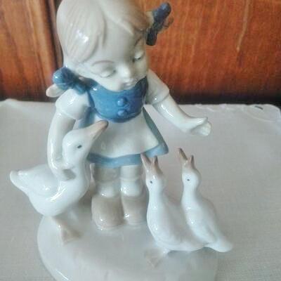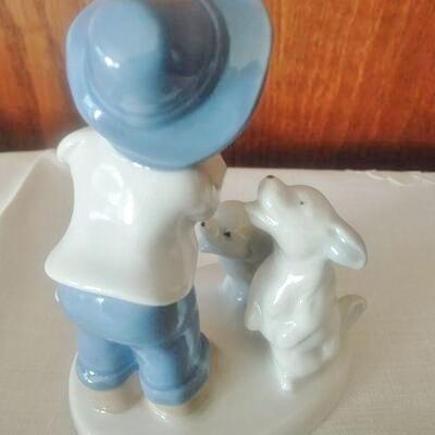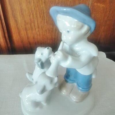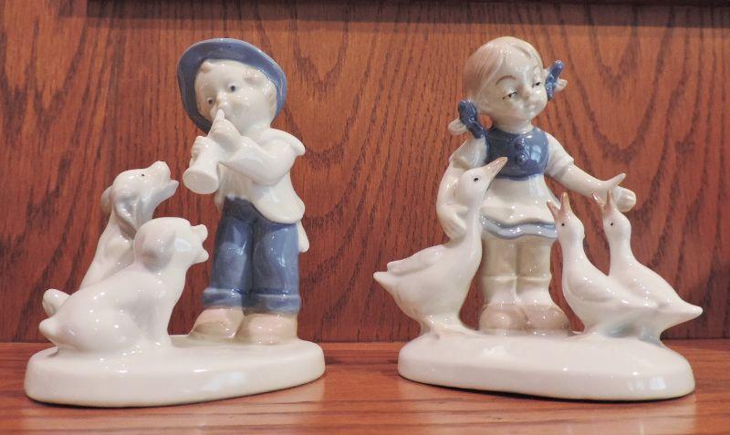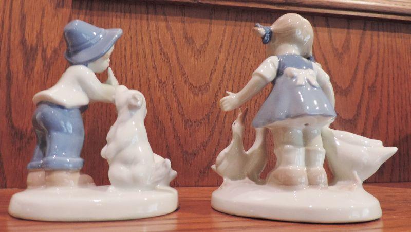 TWO VINTAGE PORCELAIN FIGURES BOTH MARKED ON BASE WITH BLUE CROWN LOGO MARK