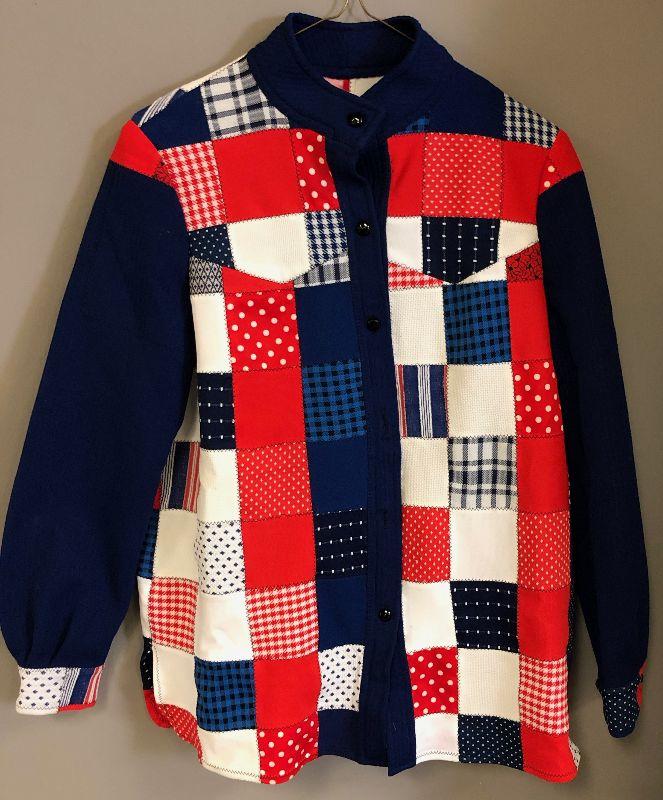 Lot # 81 Homemade Red, White and Blue, Patch work Jacket - Polyester