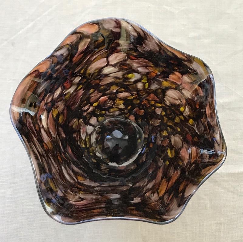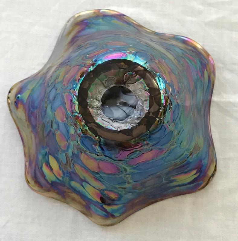 Lot #81 Iridescent Ruffled Glass Hand Blown Bowl