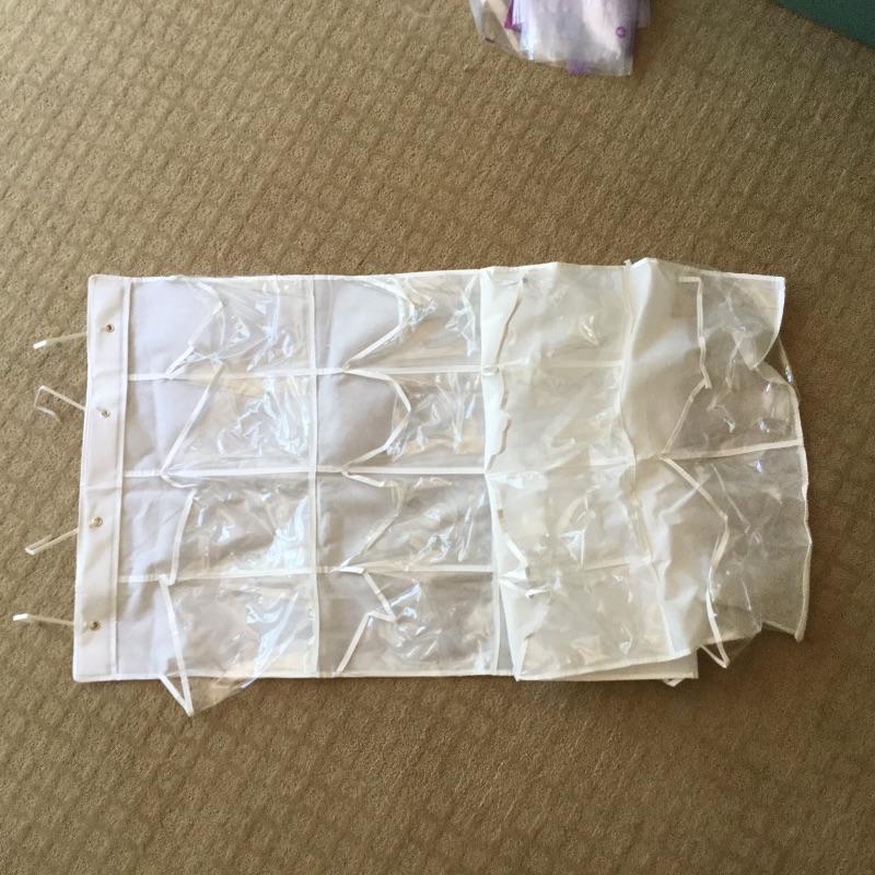A hanging Shoe Caddy Bag, Compression Bag, Shower Caddy and four Storage Bags