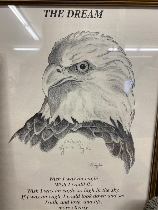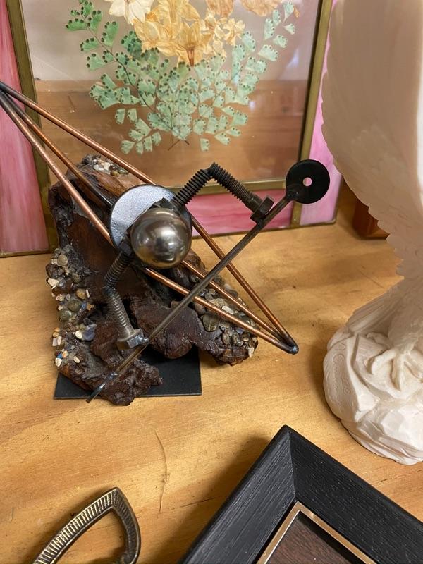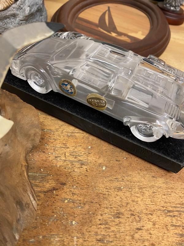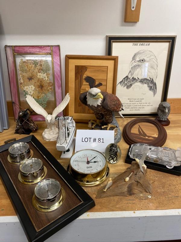 Two pieces of eagle art, sailboat, pressed flower, art, paperweight , Hofbauer car paperweight.