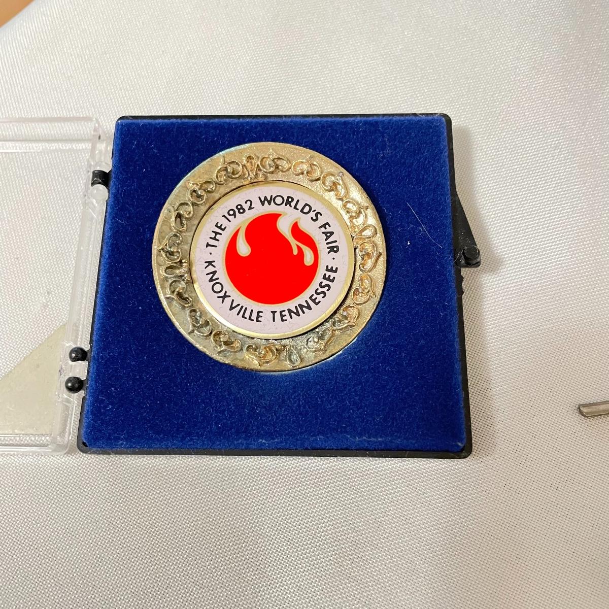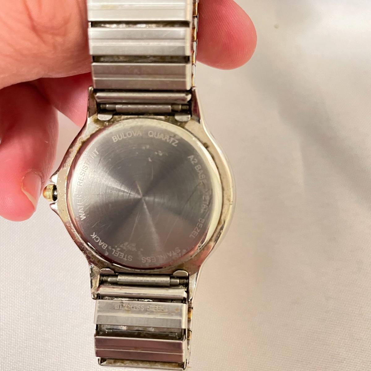 A very nice sharp royal blue face on this Bulova watch with alternating silver and gold colored stretch band. Lot also features a small pin marked Sterling and two tie tacks. A few collectibles include a 1982 Knoxville World’s Fair pendant and two RNC pins. The watch appears to be in good condition and will hopefully only need a new battery to get moving. The inner band needs some cleaning, overall it’s a beautiful piece. See images. Shipping available.