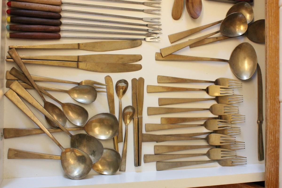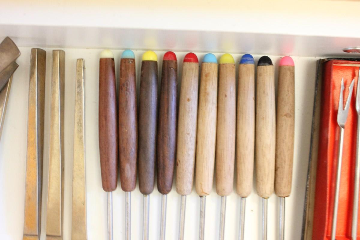 Lot 81 Mid Century Modern Gold Flatware & Fondue Forks