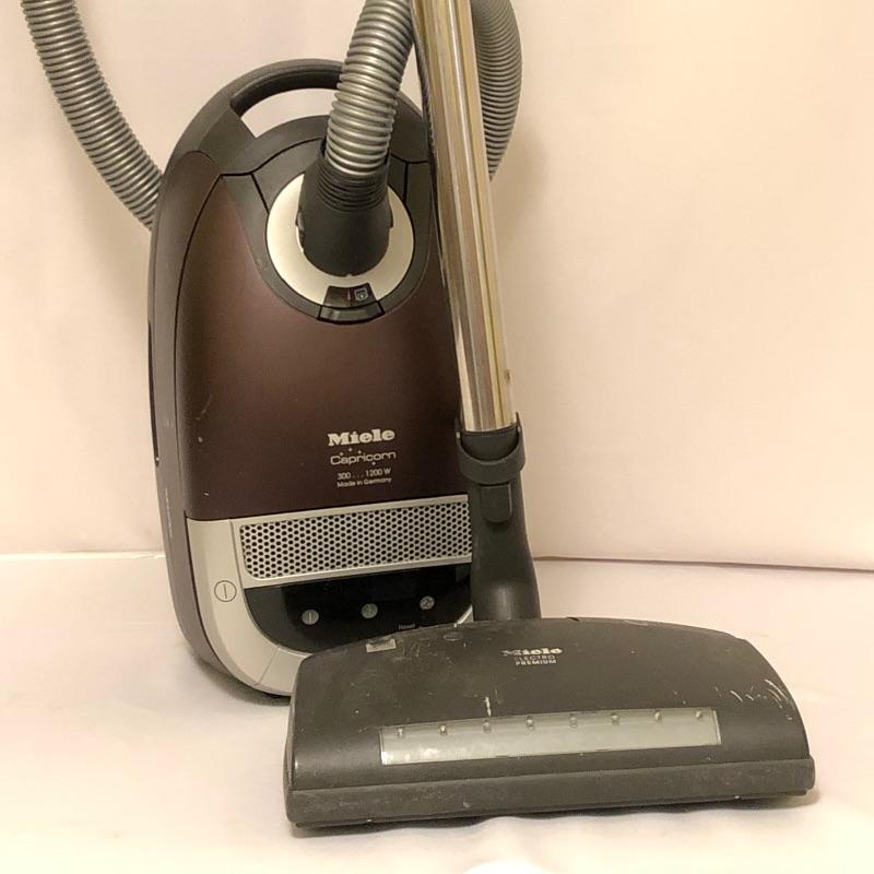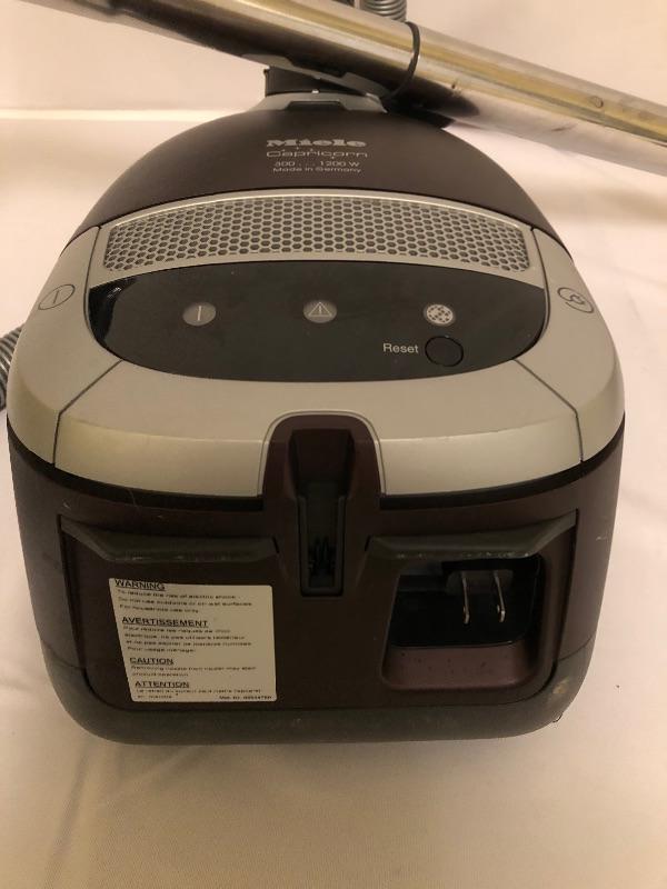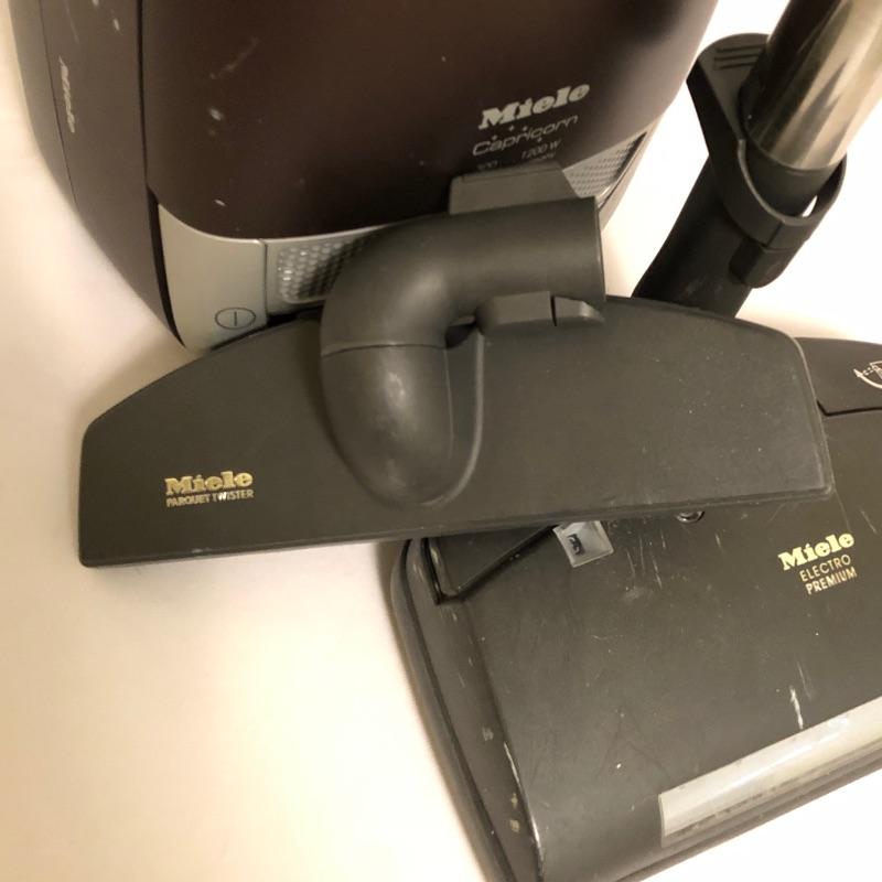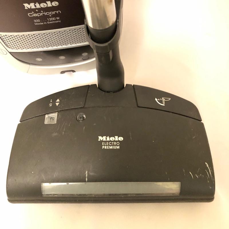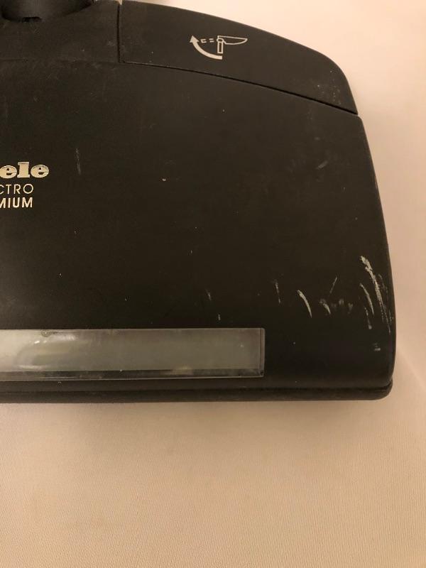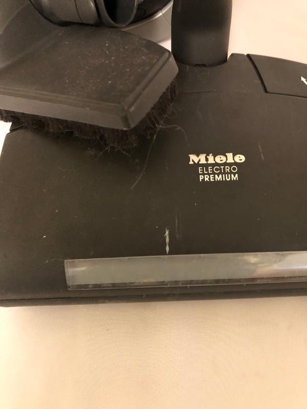 Miele Capricorn Vacuum with attachments. Vacuum turns on and it does have minor scratches and tape between handle and attachment see photos. Please be aware that this was a pet household.