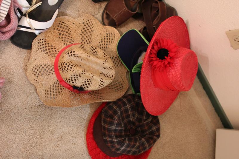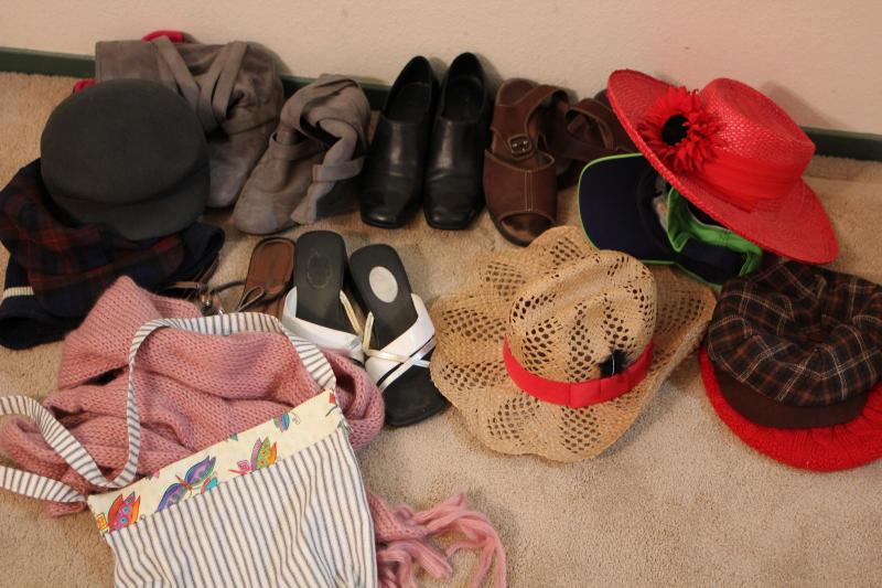 Shoes size 10 - Variety of hats and shoes. Scarf