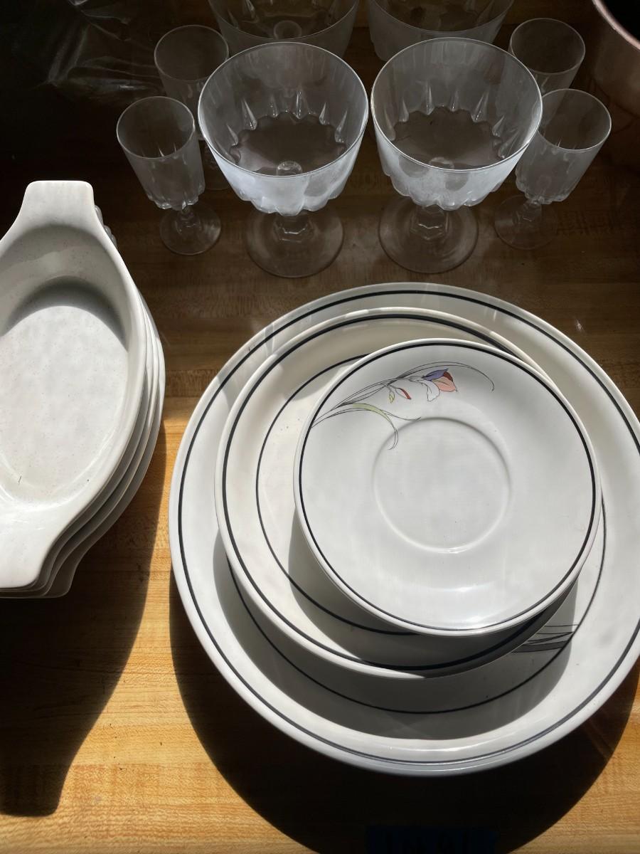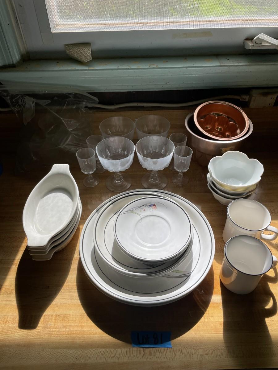 lot 81- Misc. glassware and Nitto mealow stone japan china