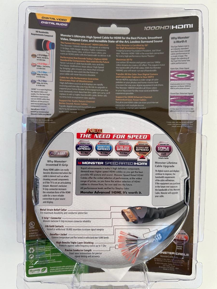 Brand new Monster Cable 1000HD for HDMI Monster Ultimate High speed cable with ethernet 17.8 Gbps. It’s 6.56 ft.