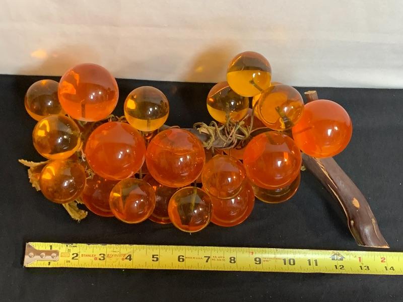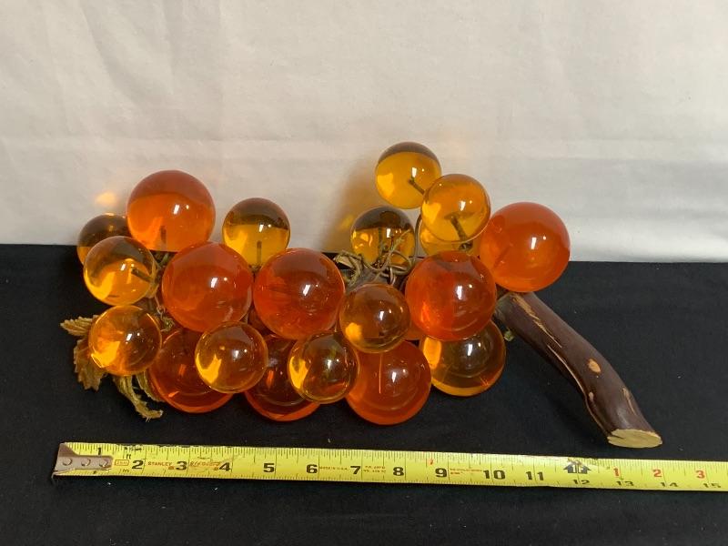 LOT 81 ORANGE GLASS CLUSTER GRAPES 14" LONG