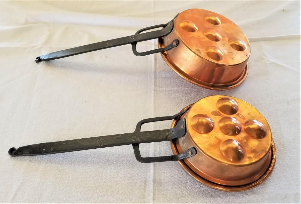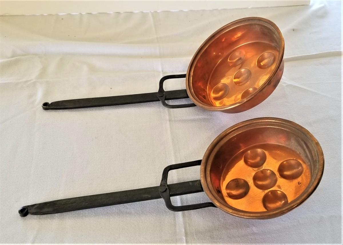 Lot #81 Pair of Copper Egg Poachers with wrought iron handles