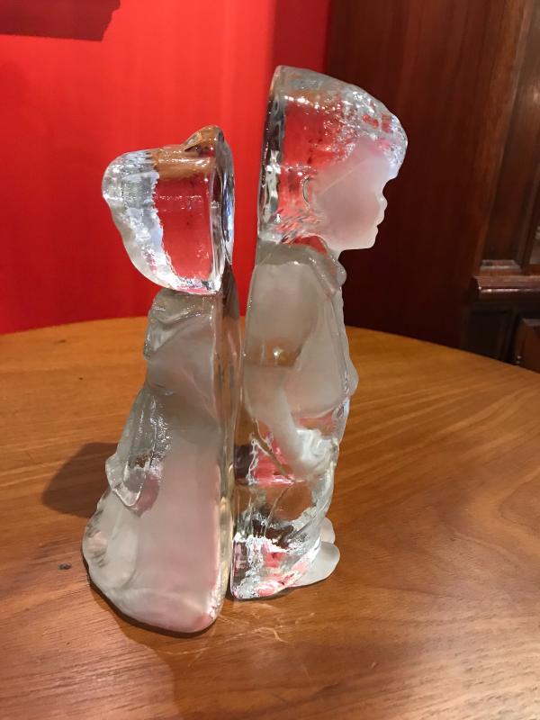 Lot 81- Pair of Viking Glass Boy and Girl Bookends