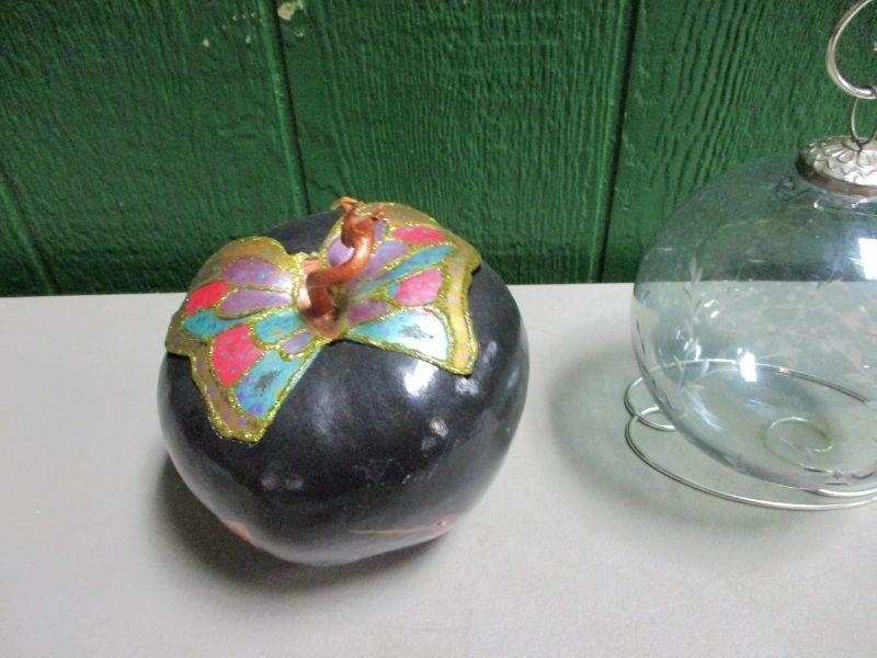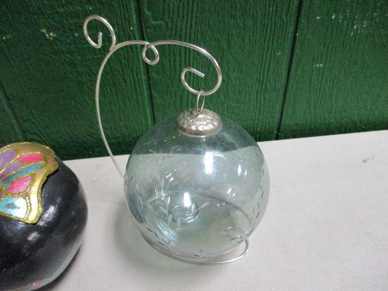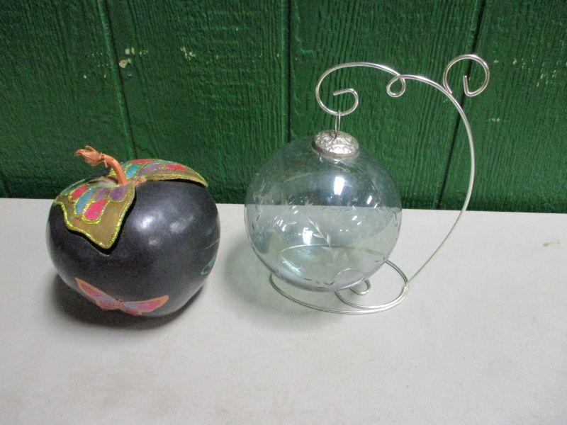 Lot 81 - Paper Apple & Decorated Hanging Glass Ball
