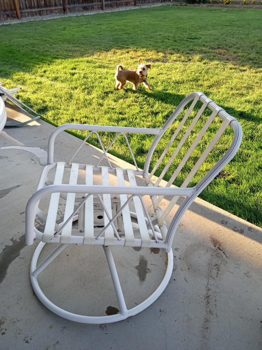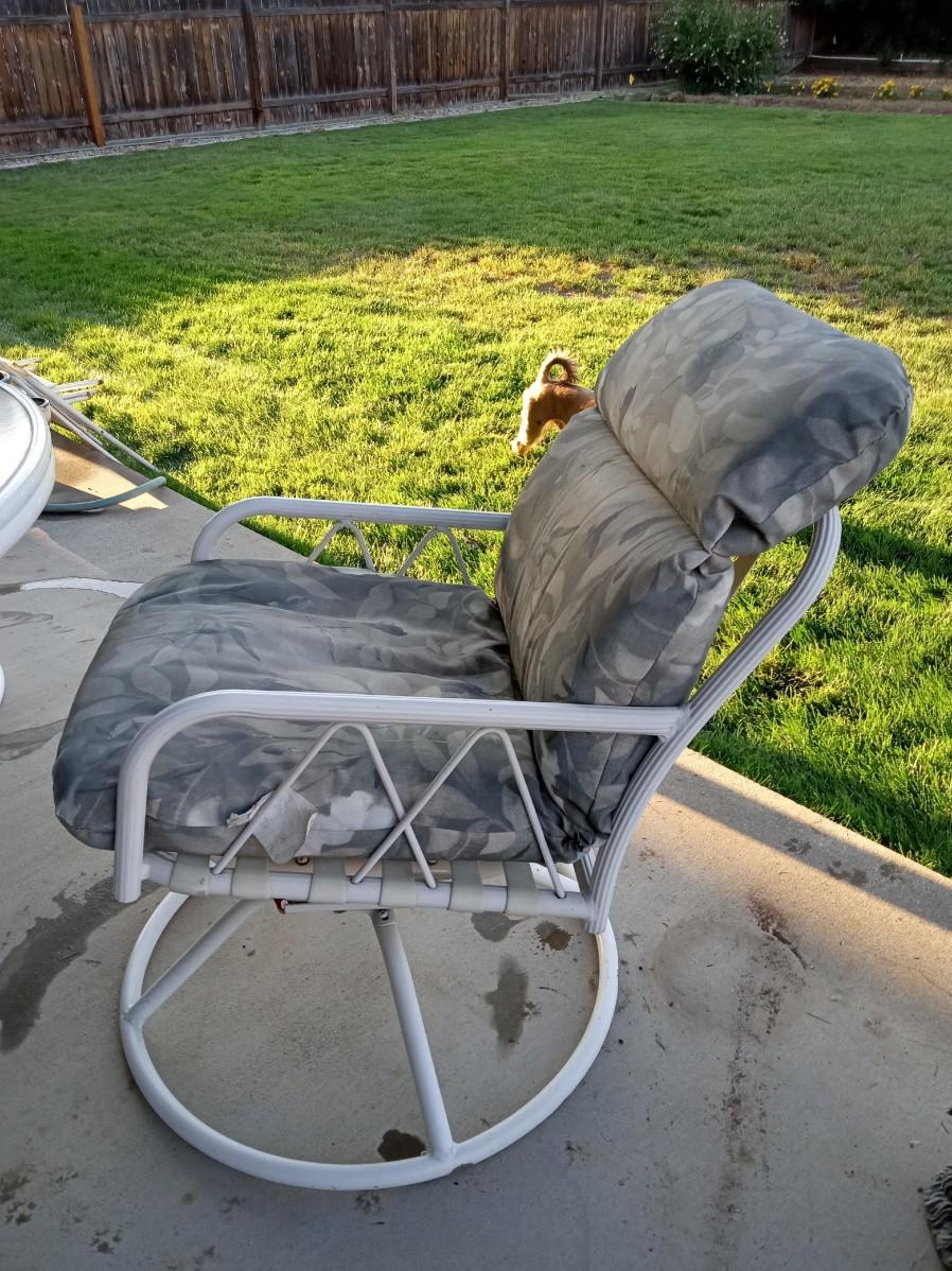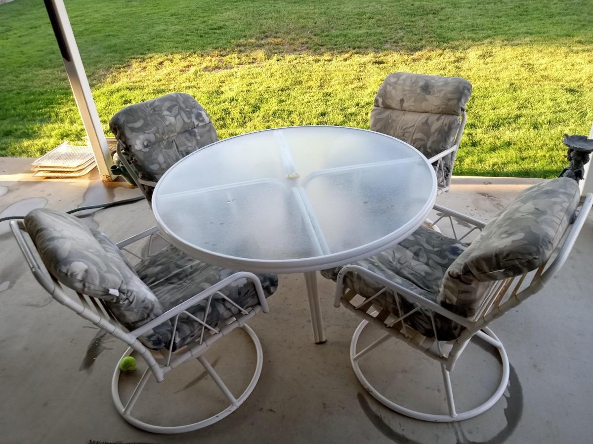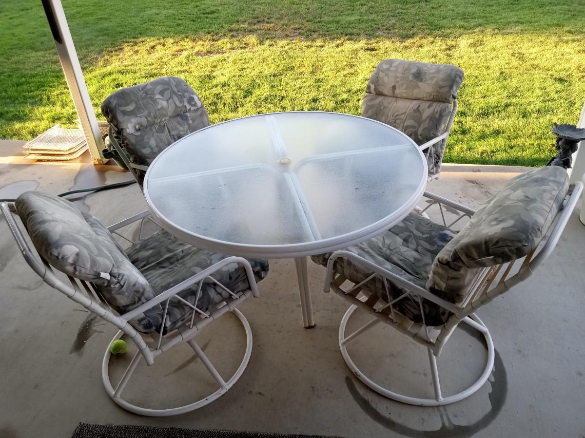 PATIO TABLE WITH FOUR MATCHING CHAIRS