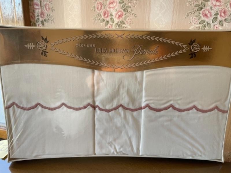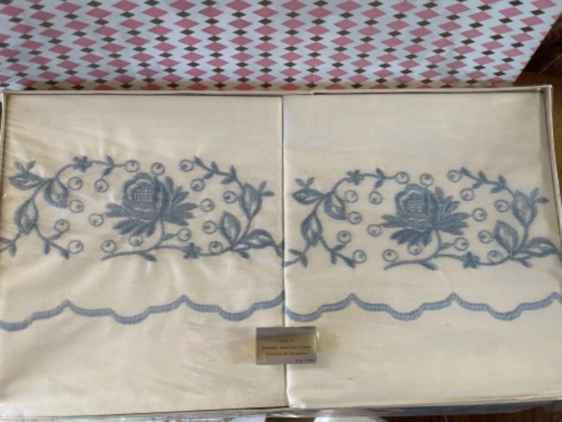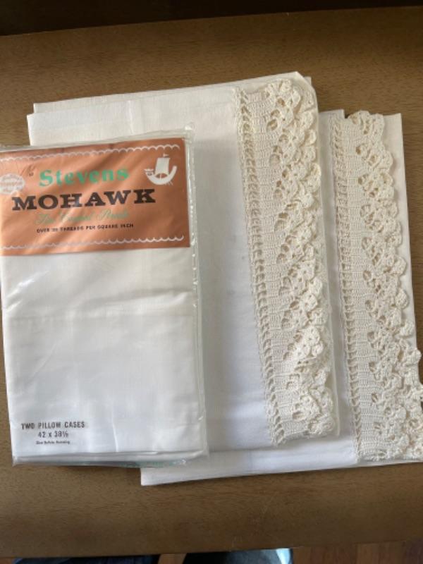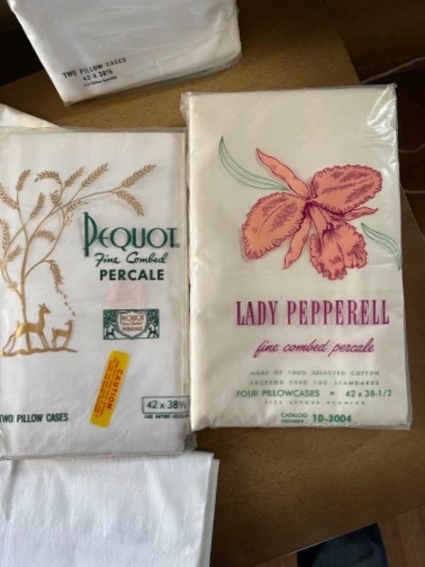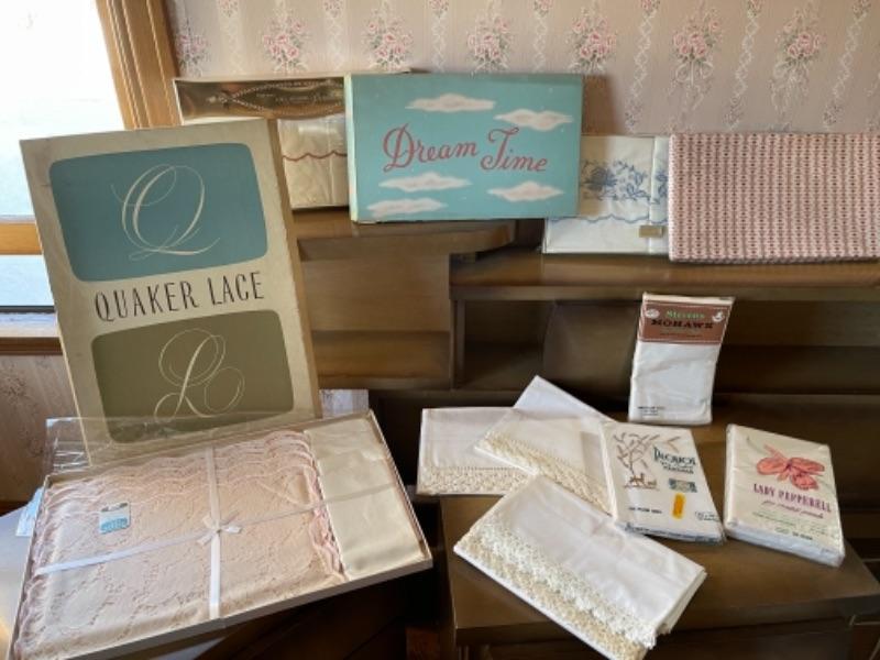 Lot 81. Pillow case sets“”1950s vintage, 3 boxed sets unopened, 3 packaged pillow cases, and 2 pillow case sets with crochet edging--$50