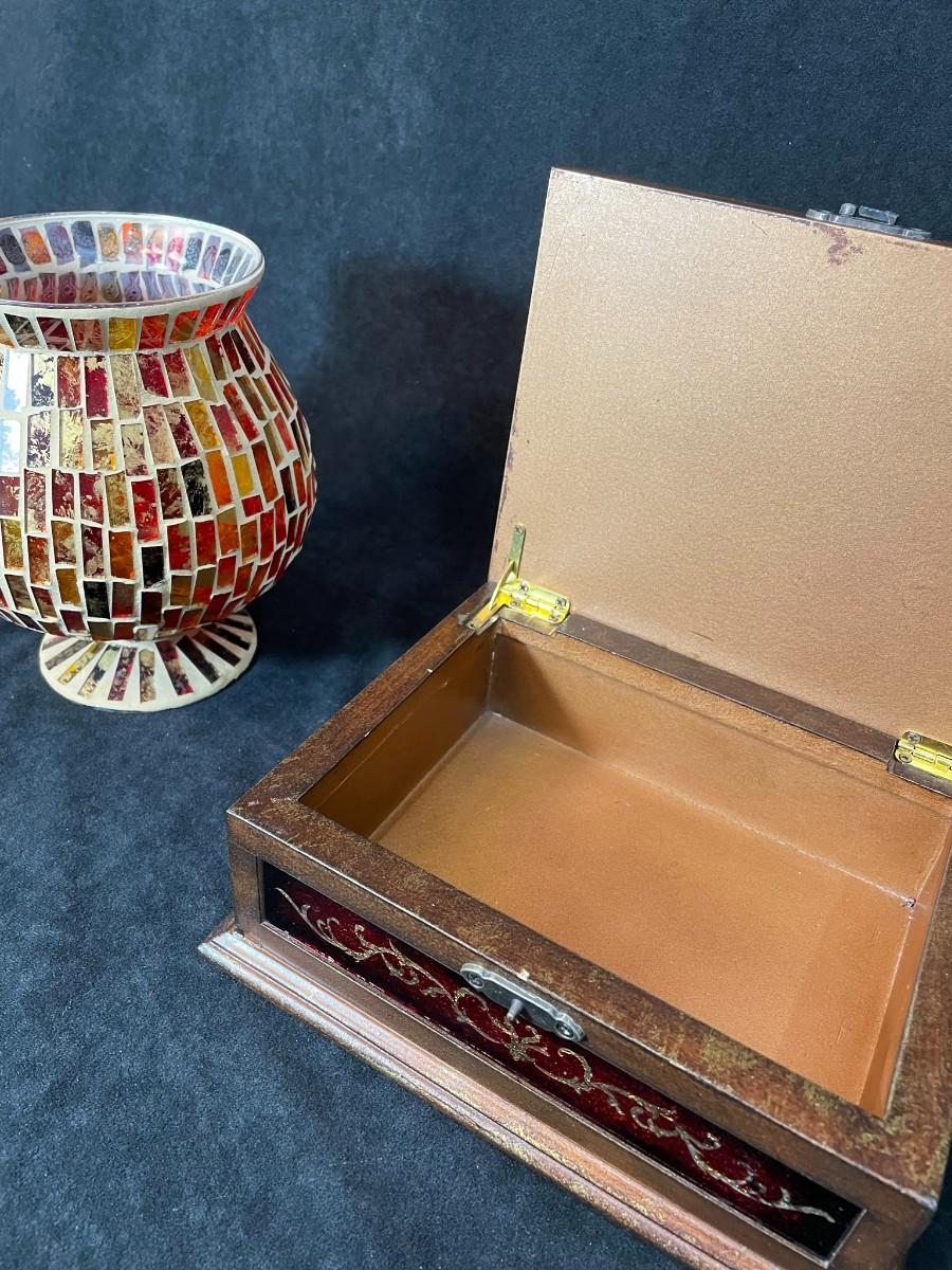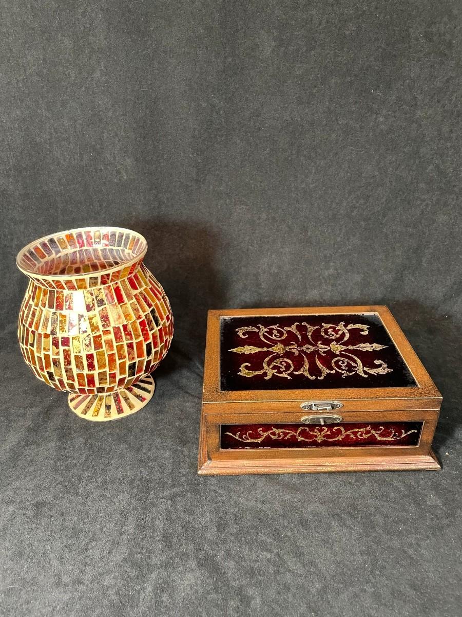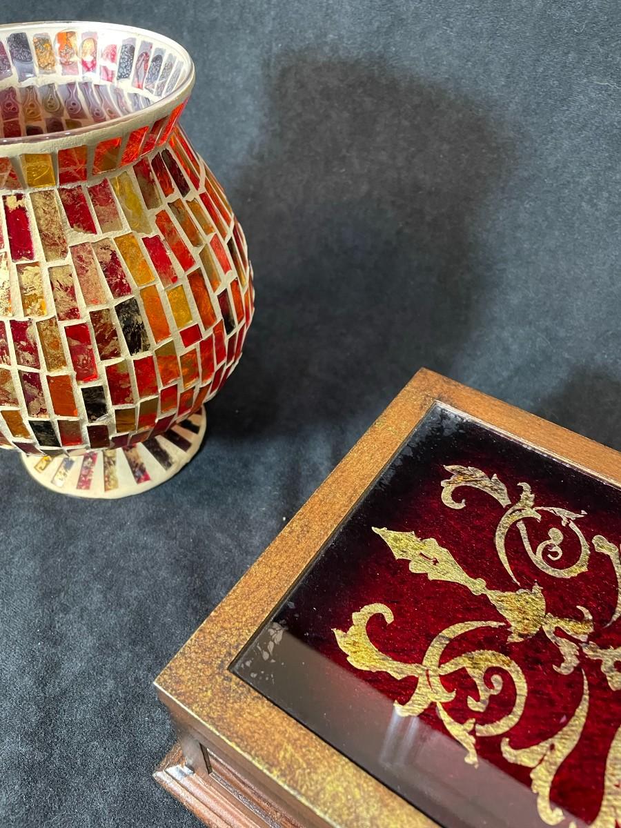 Lot 81 Red Mosaic Candle Vase & Red Box