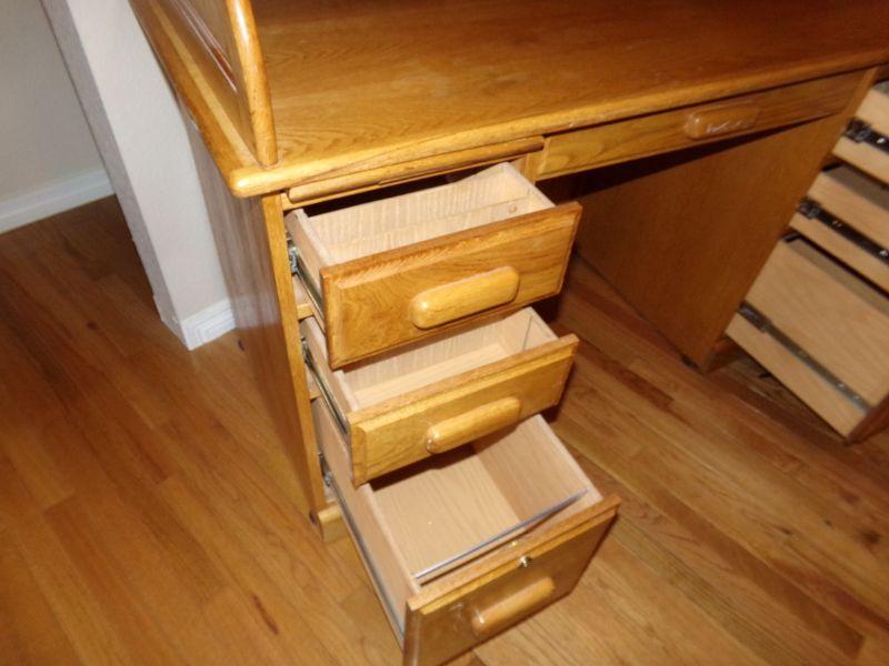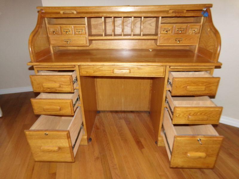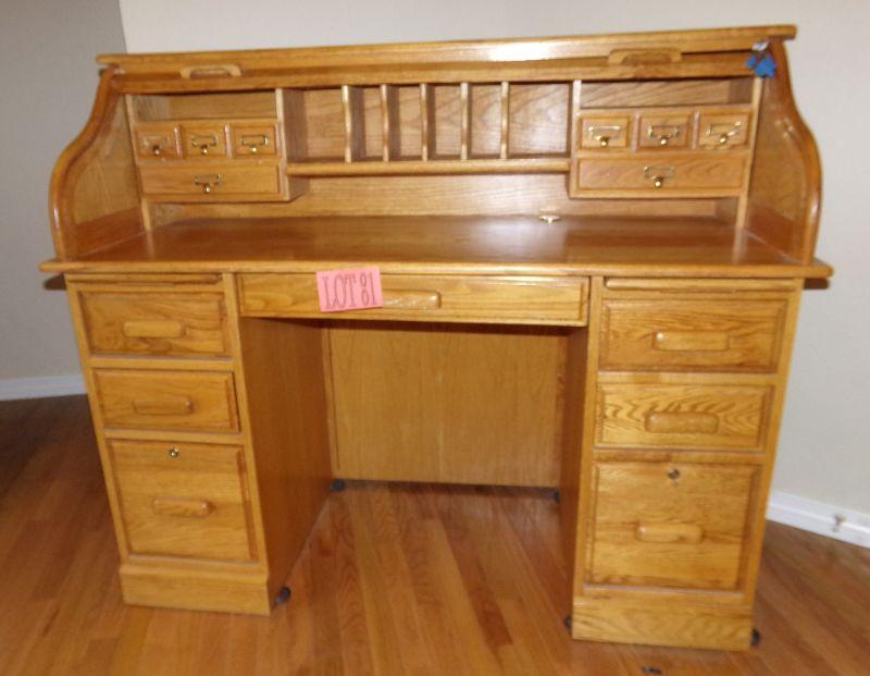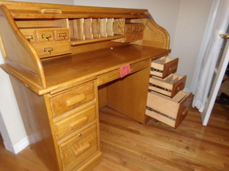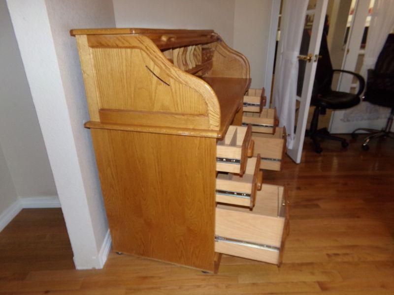 SOLID OAK ROLL TOP DESK MEASURES 29" X 44" TALL