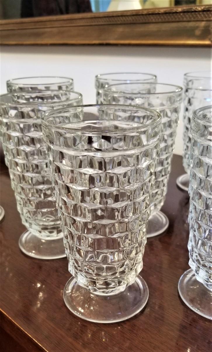 12 Vintage clear Fostoria drinking glasses - good gently used condition. Each stands 6" tall.