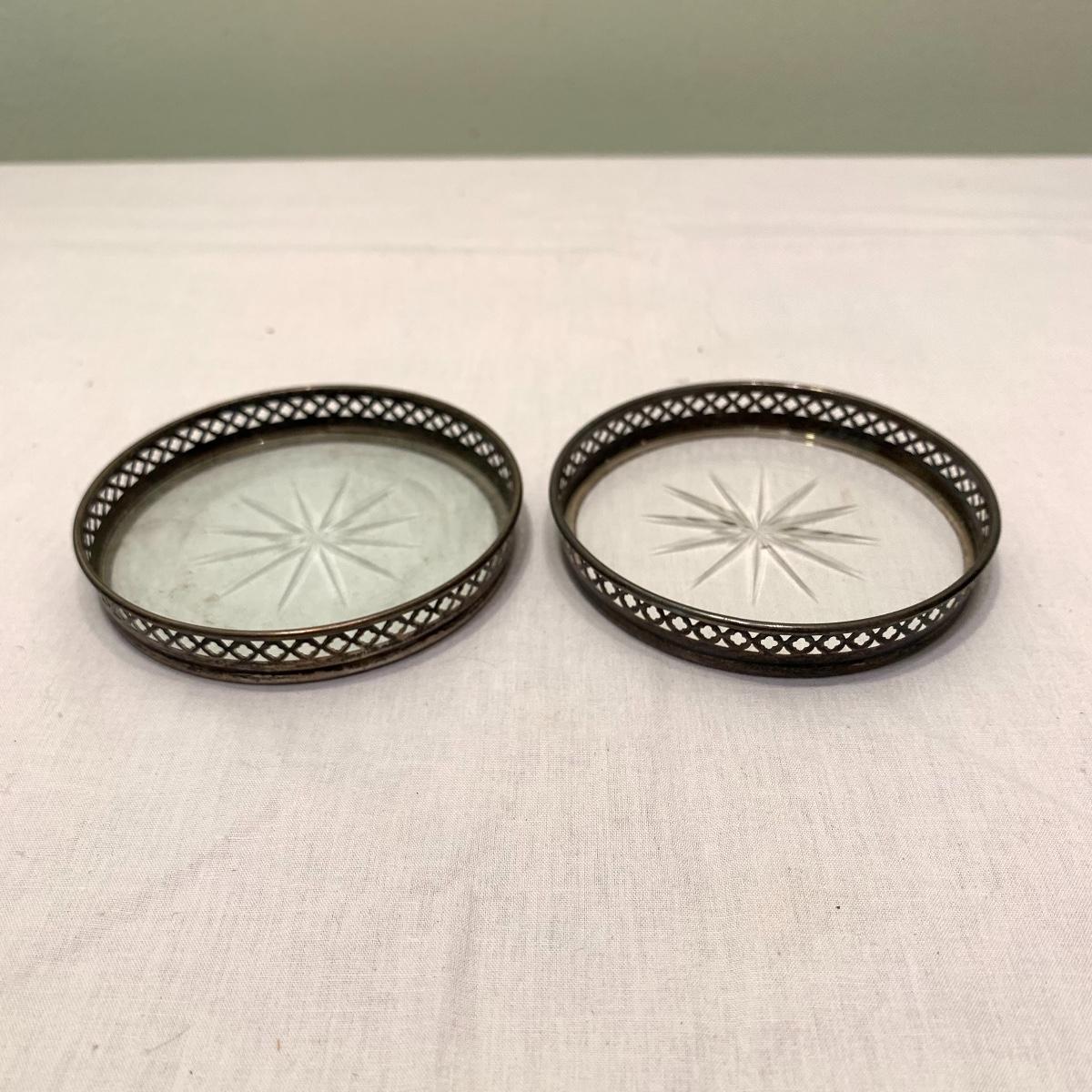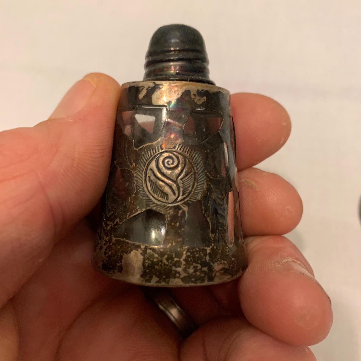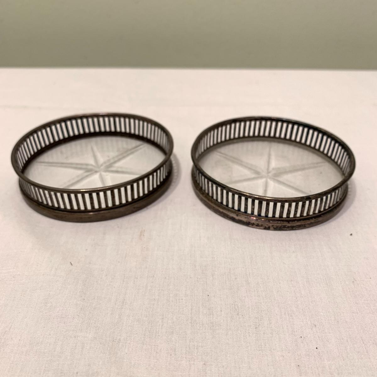 Don’t pass up this lot of vintage sterling silver accessories. This lot includes a small footed and decorative bowl, seven Silver rimmed glass coasters, and a cute pair of Sterling overlaid glass salt & pepper shakers. See pics for details. No found markings on the coasters. Shipping available.