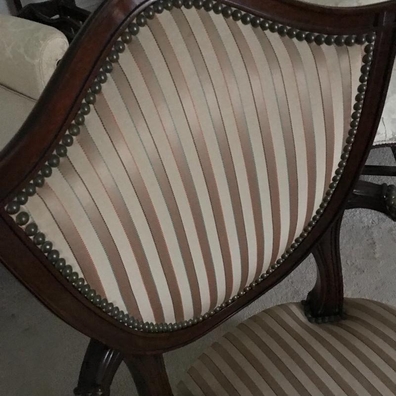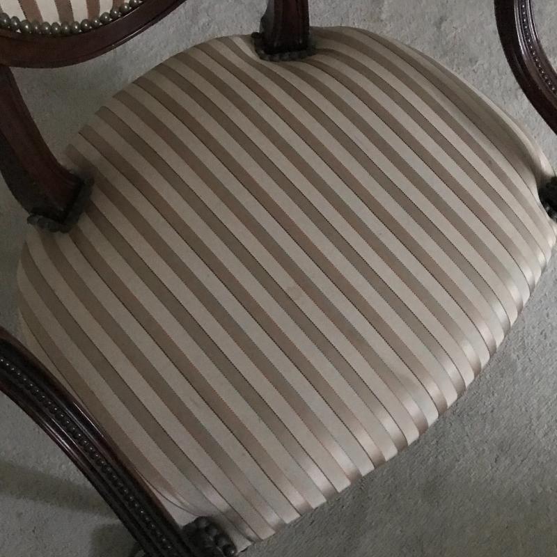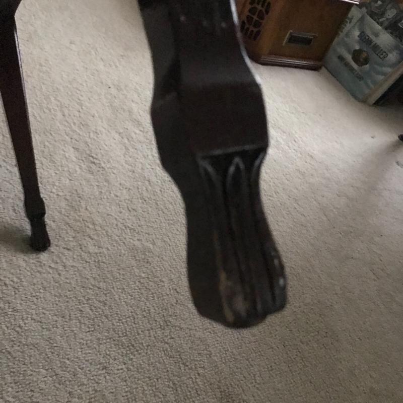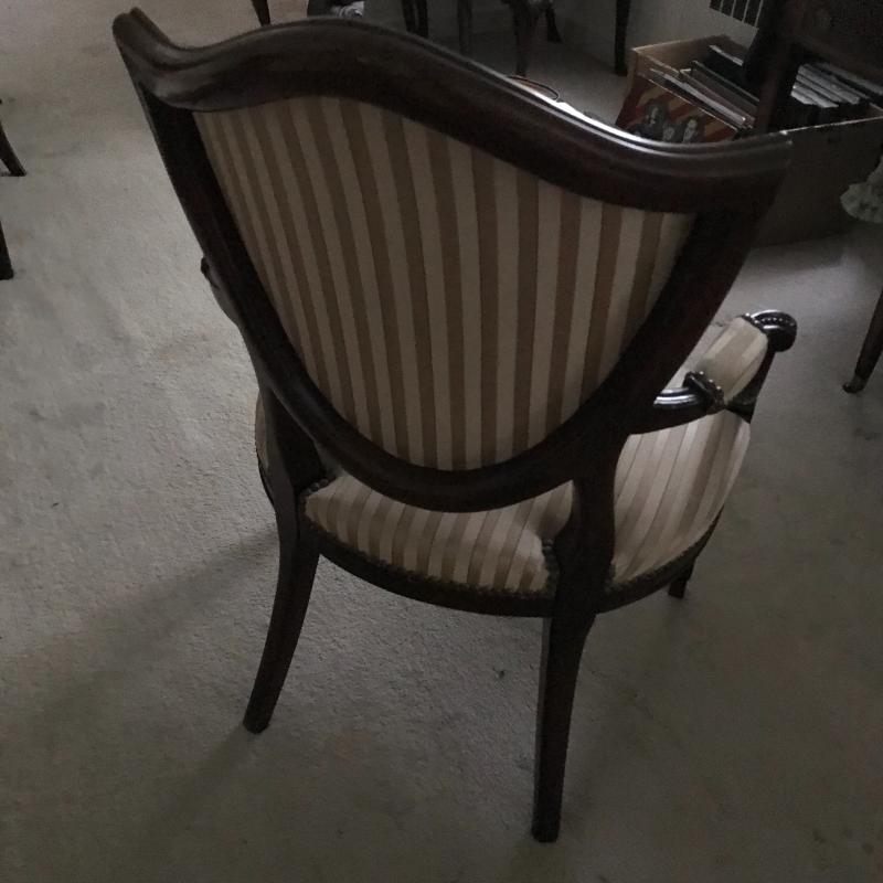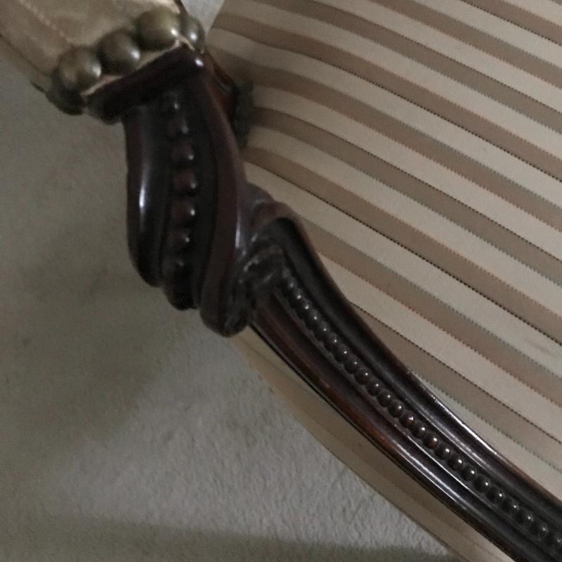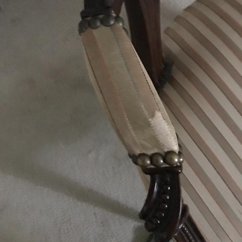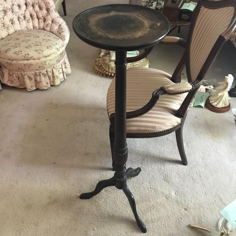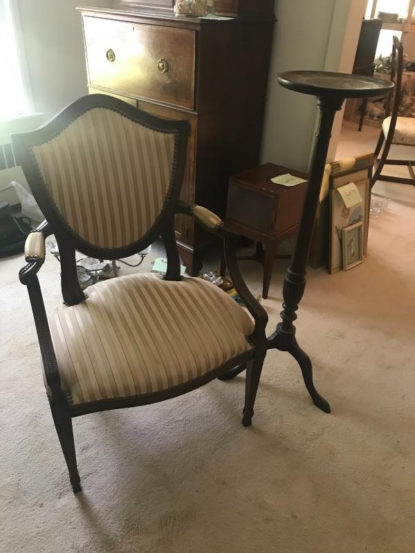 This unique antique armchair is in great condition. All upholstery is in tact and with no worn spots. Wood has been well maintained. Plant stand has stained top but is sturdy and otherwise good shape. Approx. 23.5” x 20” x 37” for chair and stand is 41” tall. No shipping available. Local pickup only in Asheville, NC.