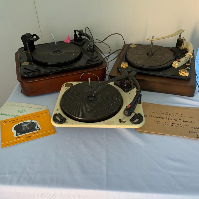 Three Garrard turntables The one on the left of the cover pic is a model number RC 88/4 and powered on when tested. The turntable in the middle is a Model number RC 121/4D. The unit on the right is a model number RC 121. There is also original owners manuals included in this lot.