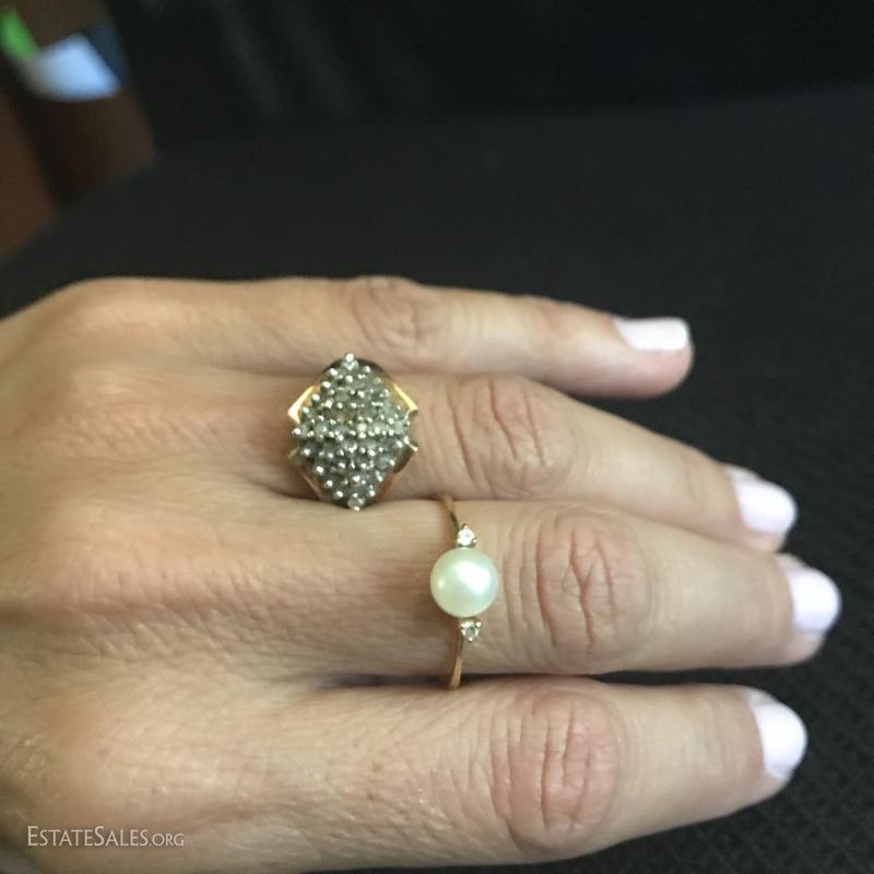 Next one, Gold, Diamond and Pearl Ring is approx size 8. Marking inside is illegible. Can not verrify authenticity of any stones or metals. Only Stating what is seen by the naked eye. This lot is available for shipping or local pick up in Saluda, NC.
