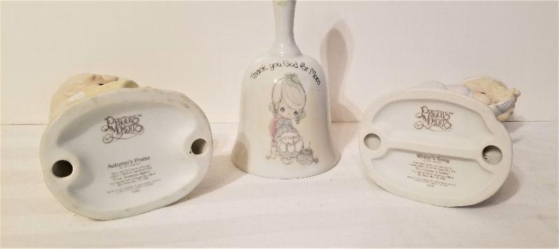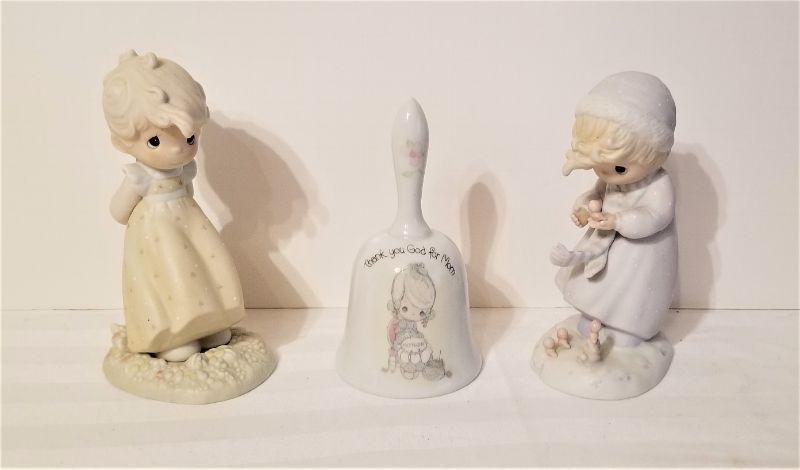 Lot #81  Two Precious Moments Figurines and a Precious Moments Bell