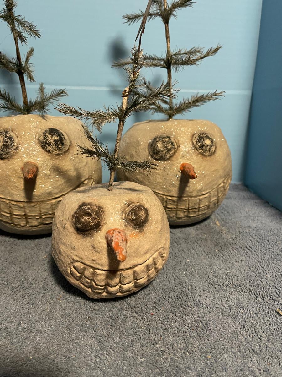 THESE ARE UNIQUE COLLECTABLE BLACK CROW/KEVIN SMITH SNOWMAN HEADS!!!TALLEST IS 13 1/2'' TALL.. 1 HEAD HAS A HOLE.. LIGHT WEAR..