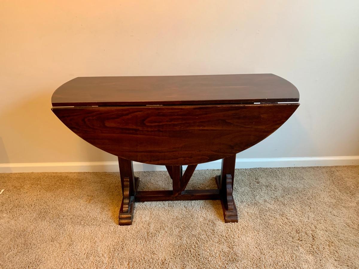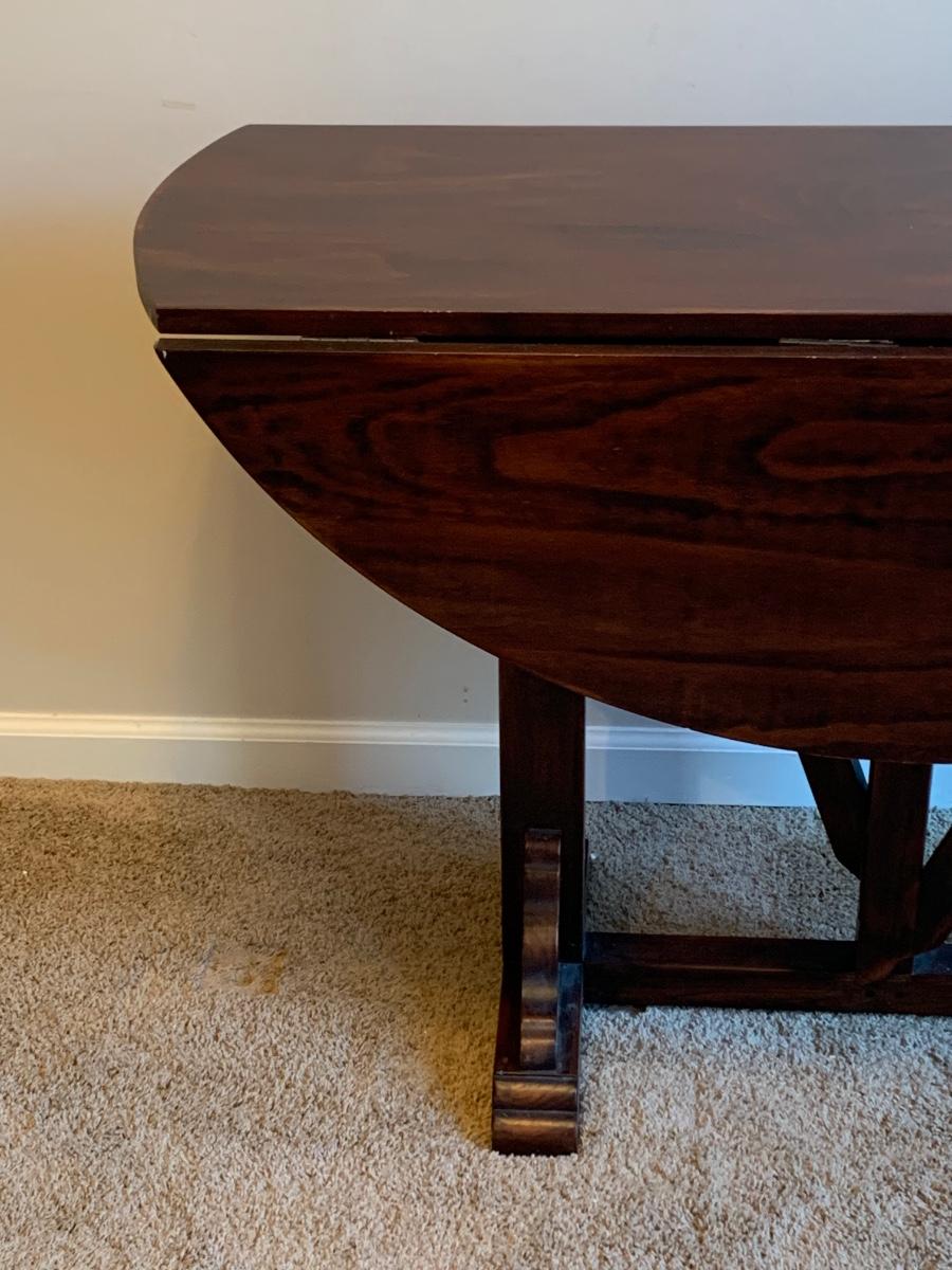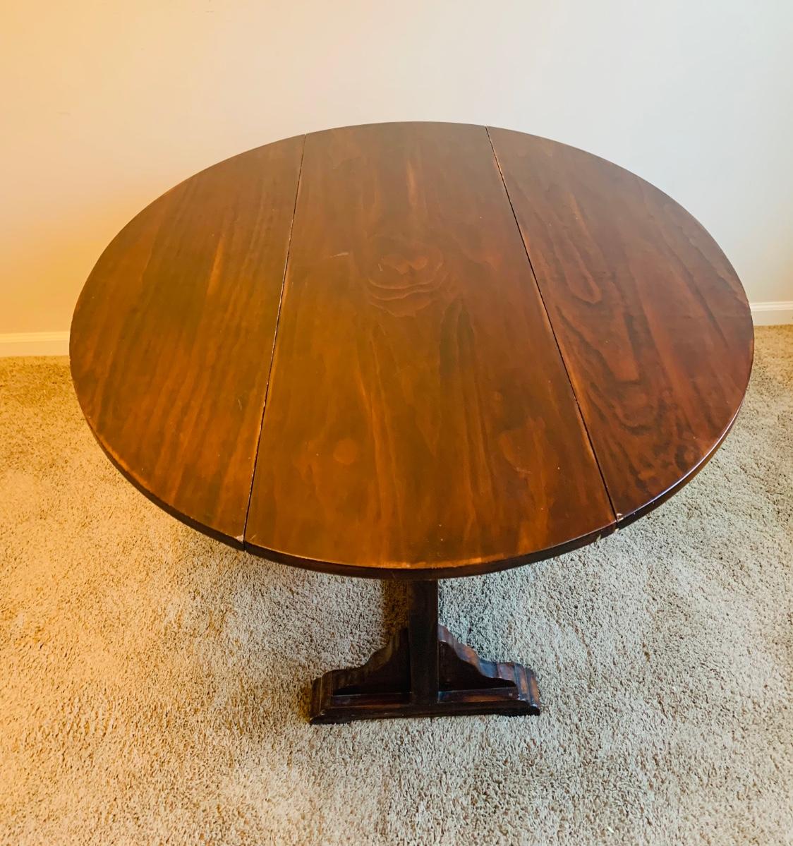 Drop Leaf opens to an oval measuring 39 x 46 x 29, with sides down 18 x 46.