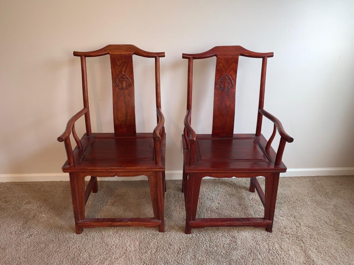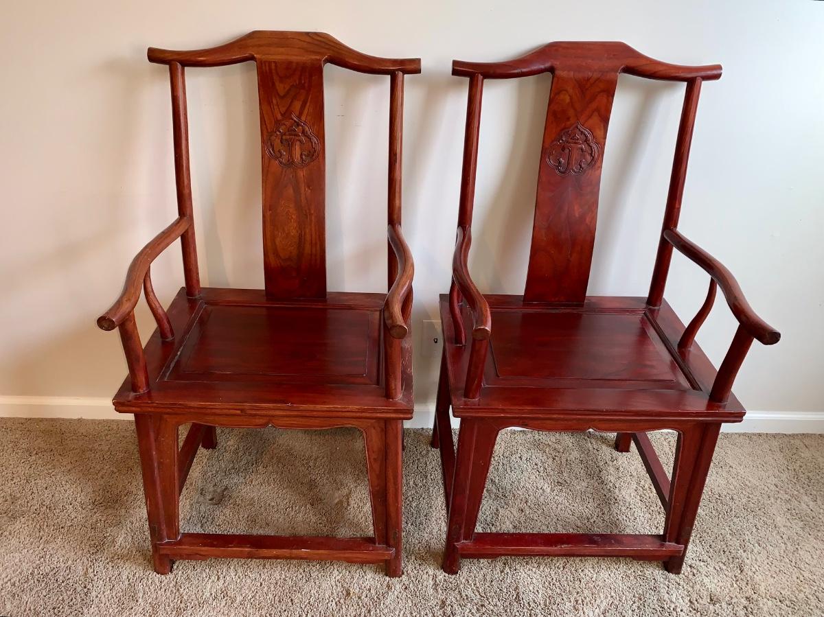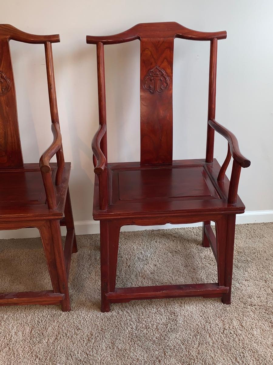 LOT 5R: Vintage Red Lacquer Arm Chairs