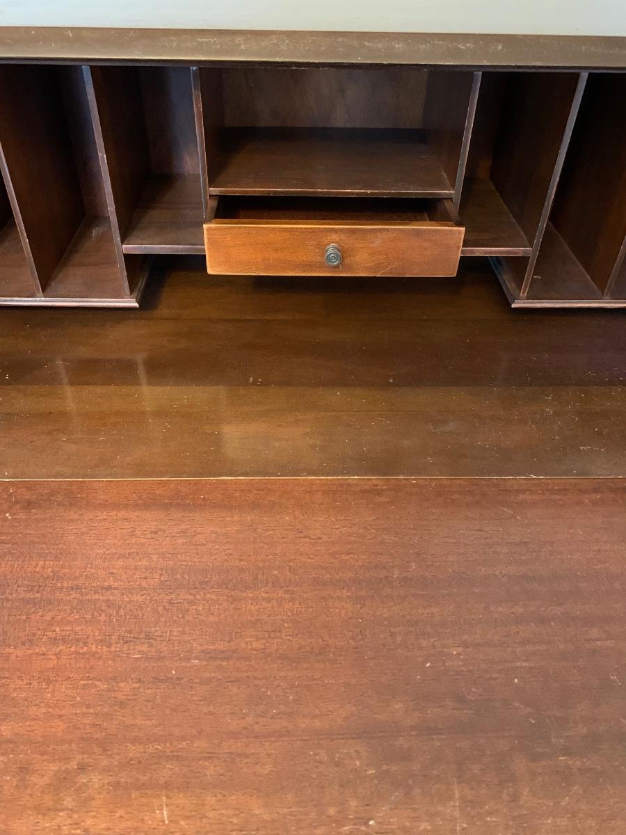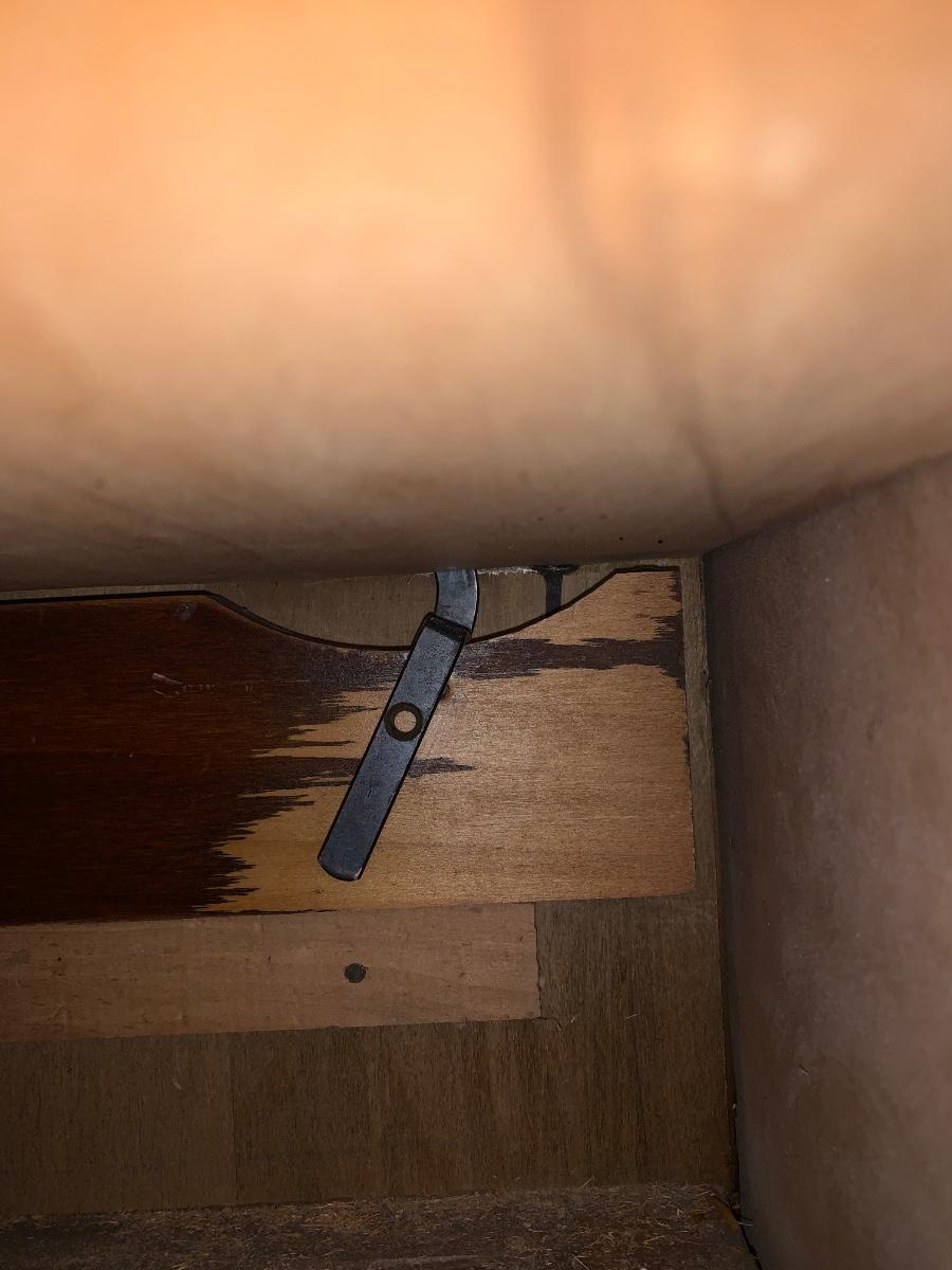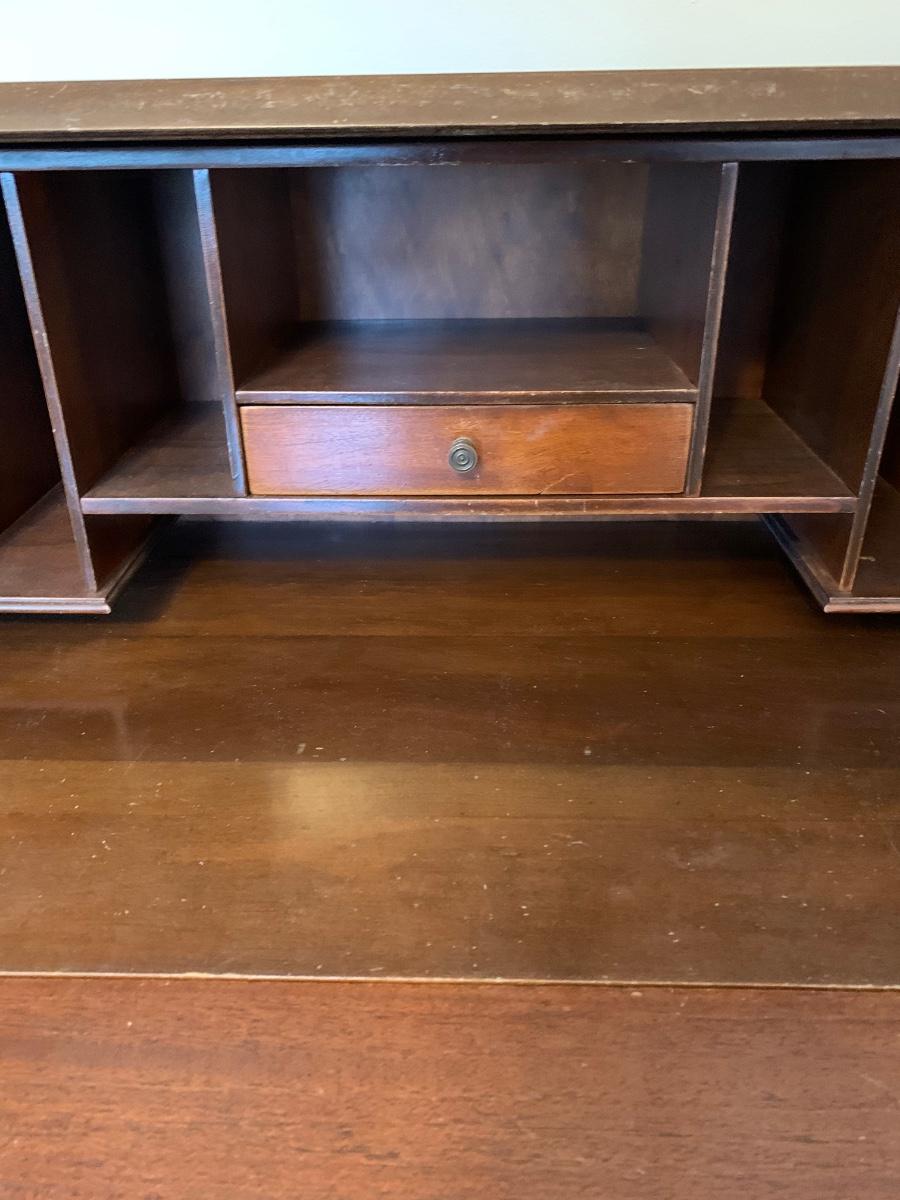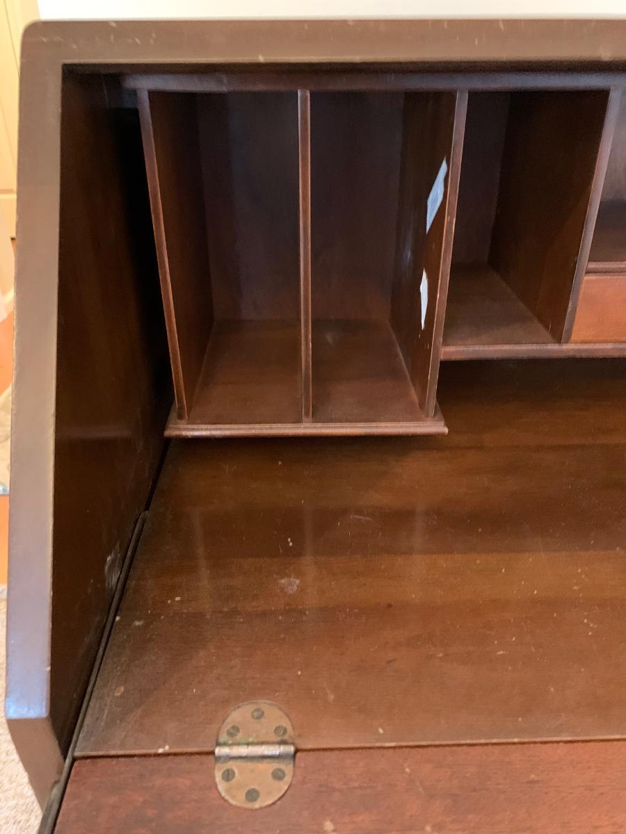 Desk is in need of a very minor repair. There is a screw missing from the bracket which allows the desk top to fold up - as pictured.