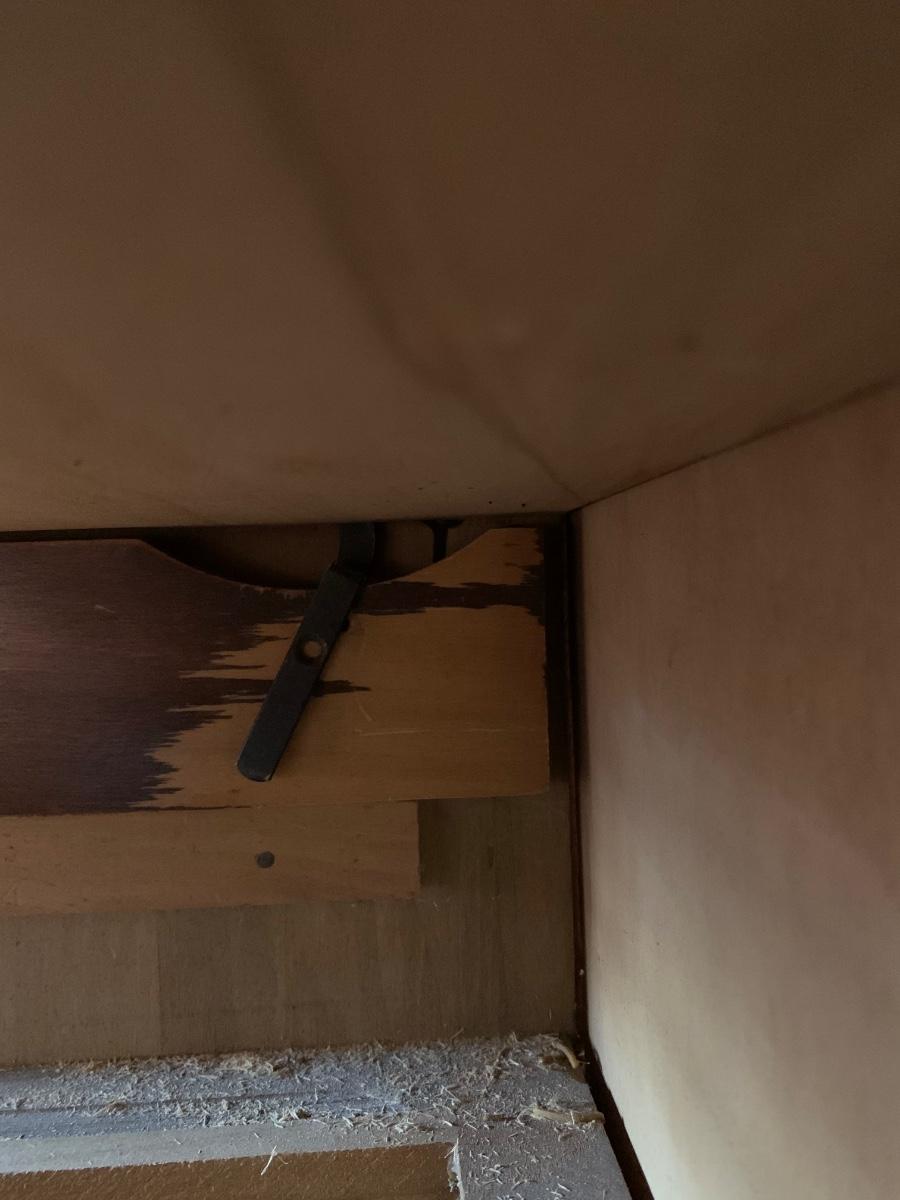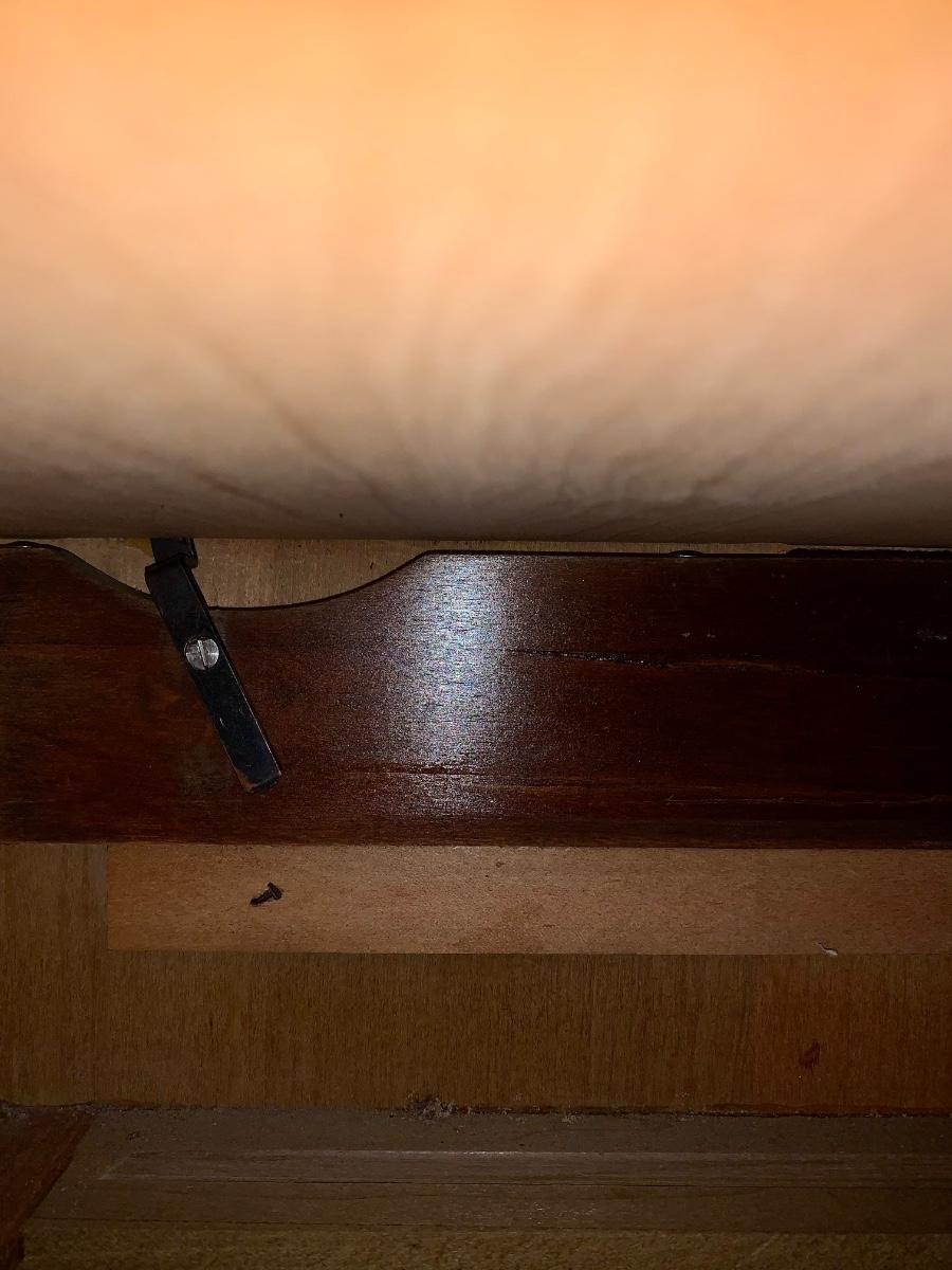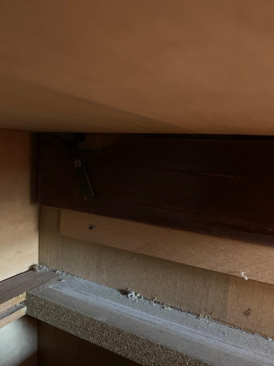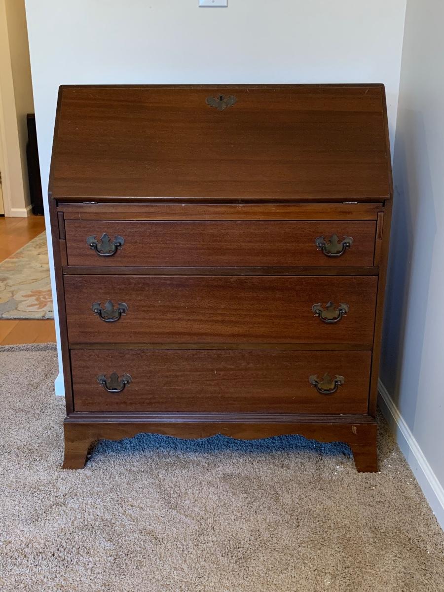 Desk is in need of a very minor repair. There is a screw missing from the bracket which allows the desk top to fold up - as pictured.