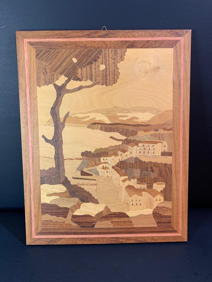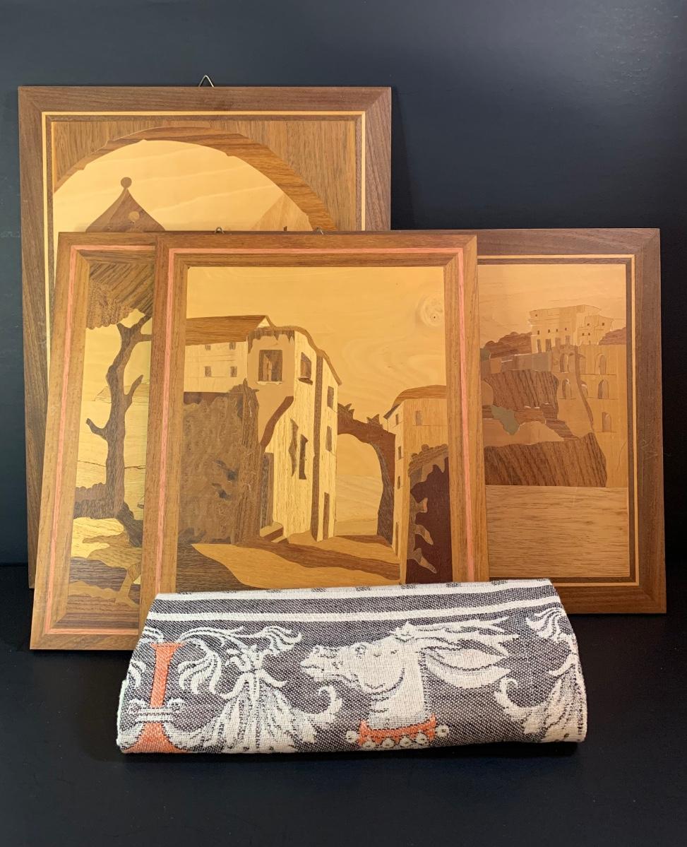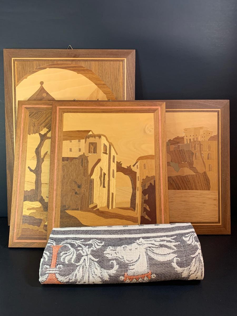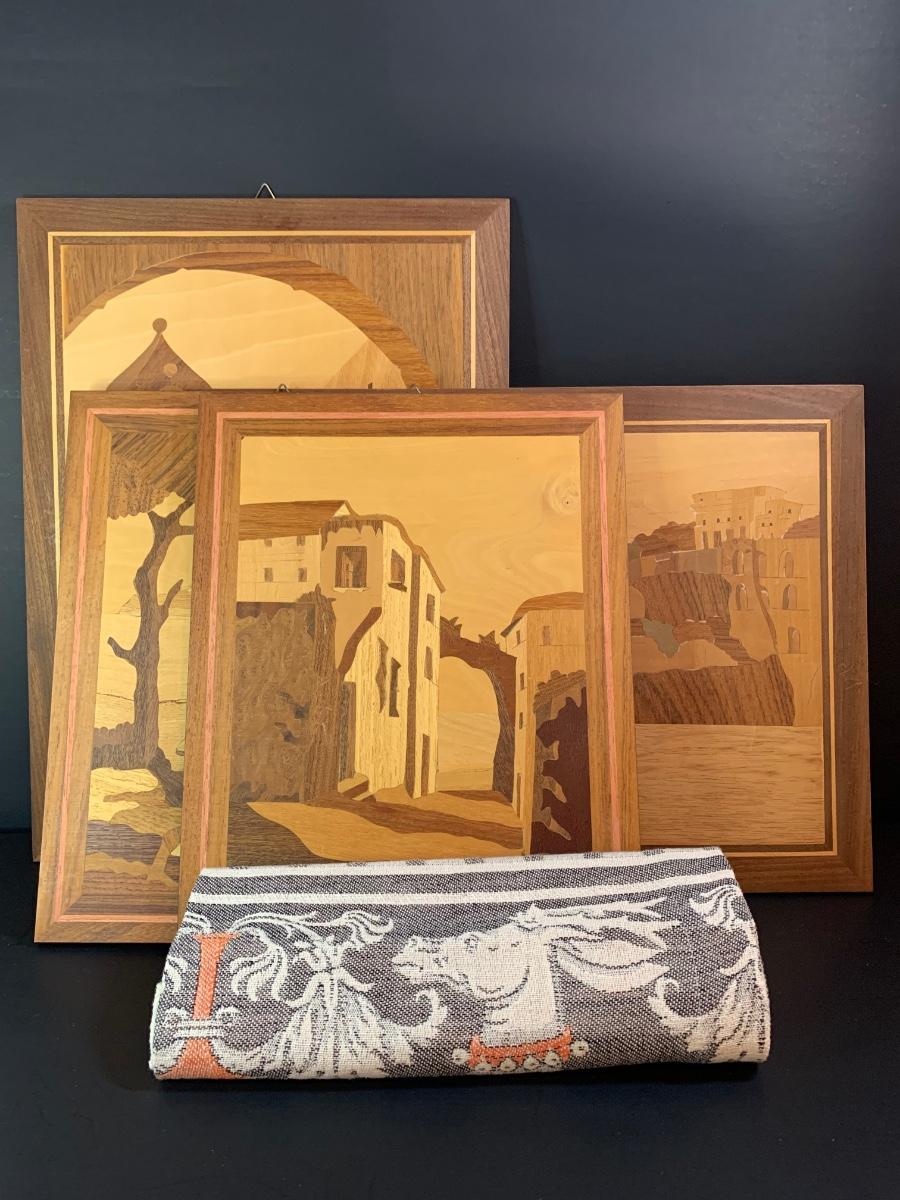 LOT 30R: Vintage Inlaid Wooden Art & Cloth/Tea Towel