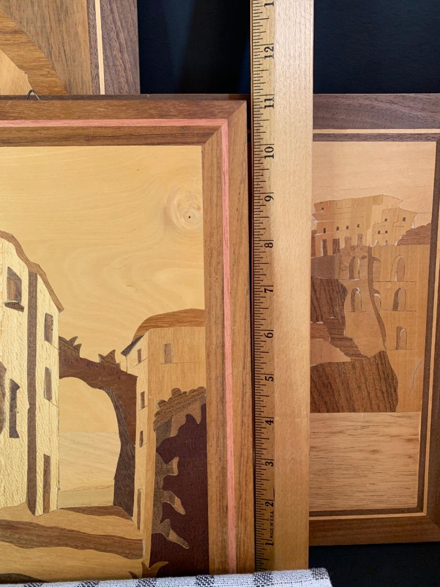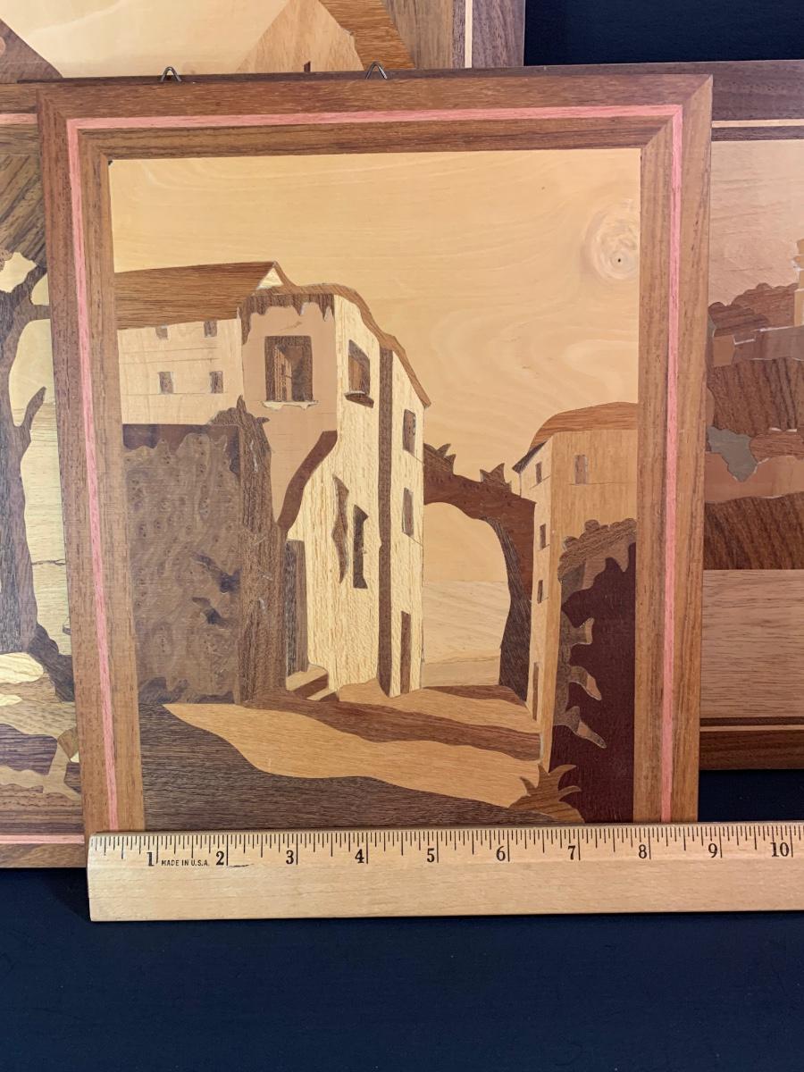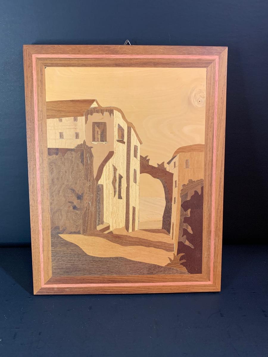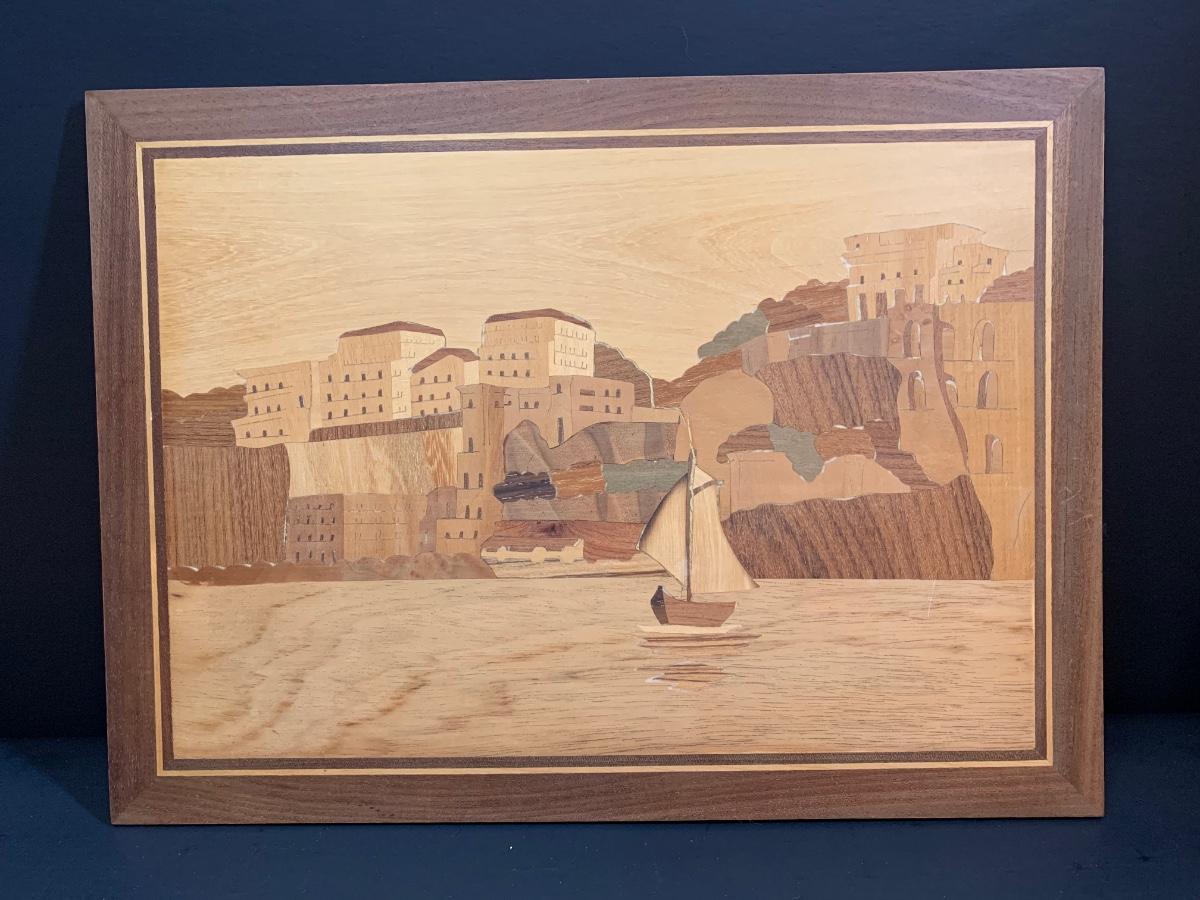 LOT 30R: Vintage Inlaid Wooden Art & Cloth/Tea Towel