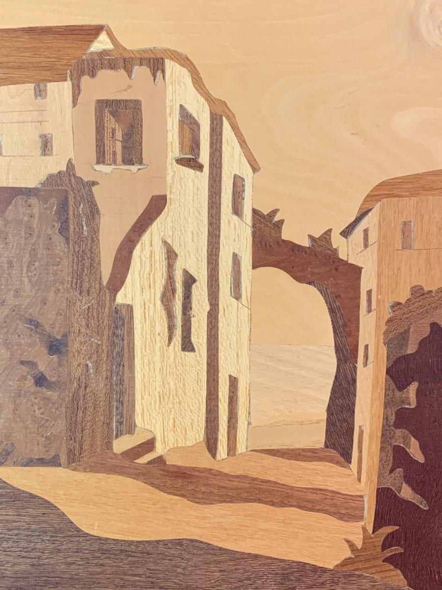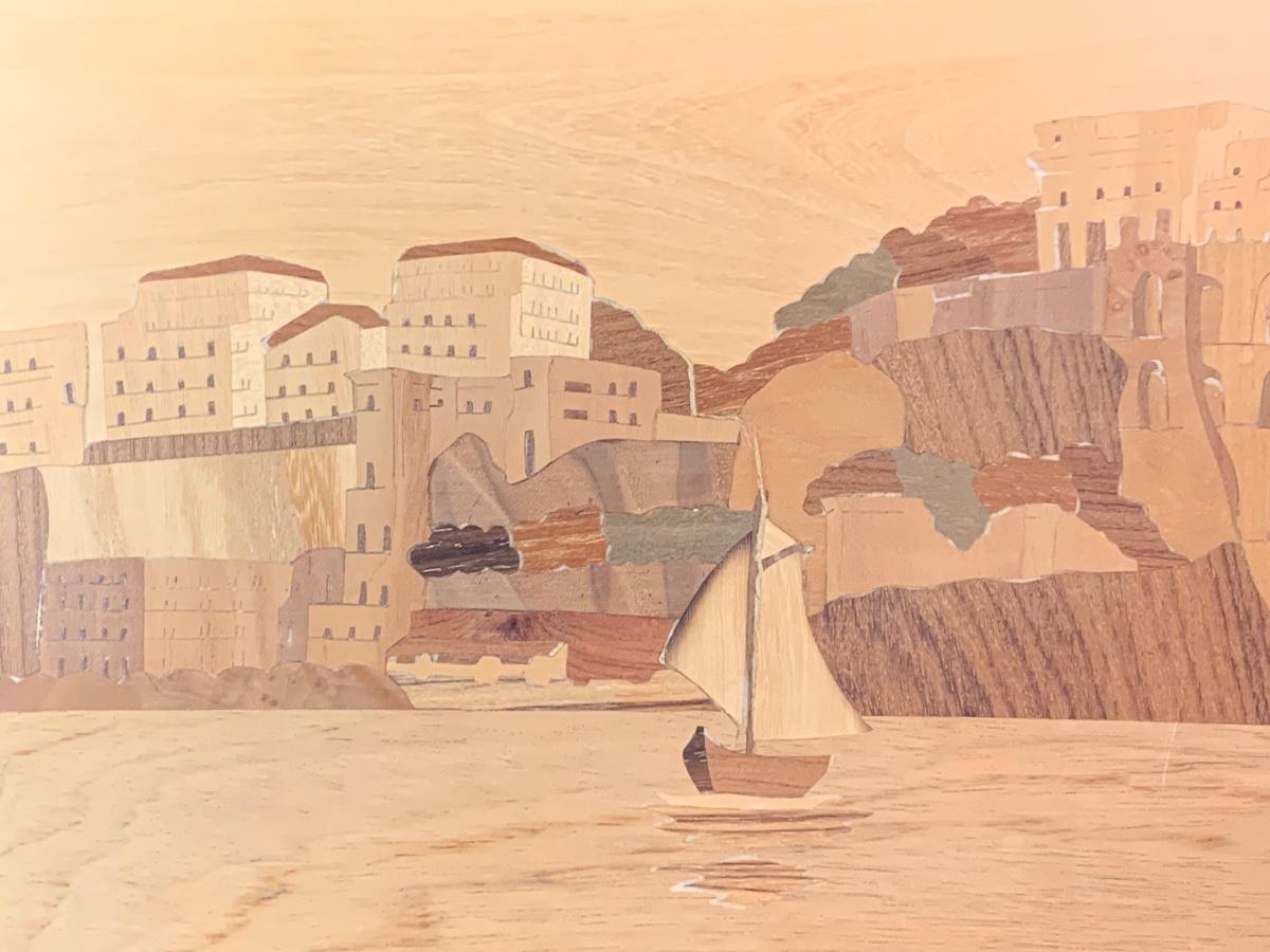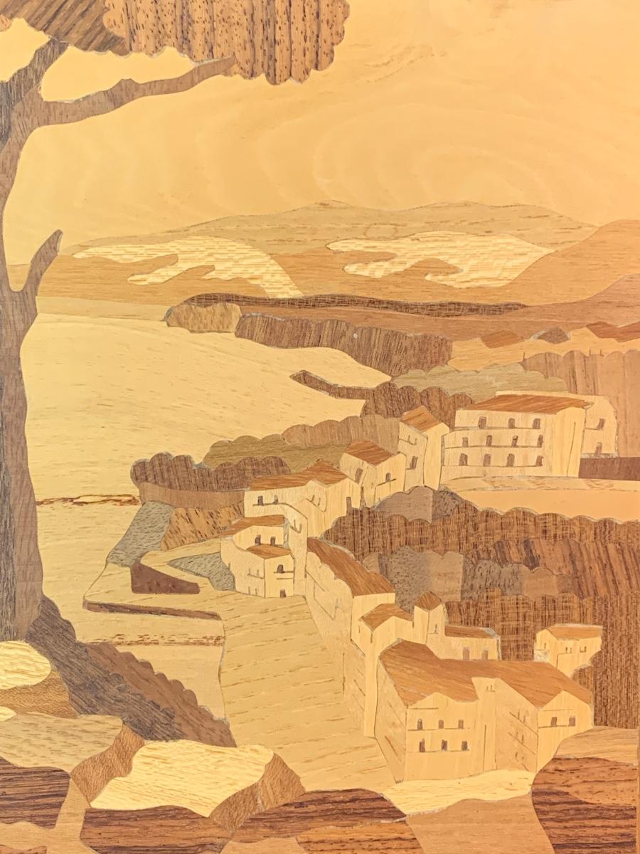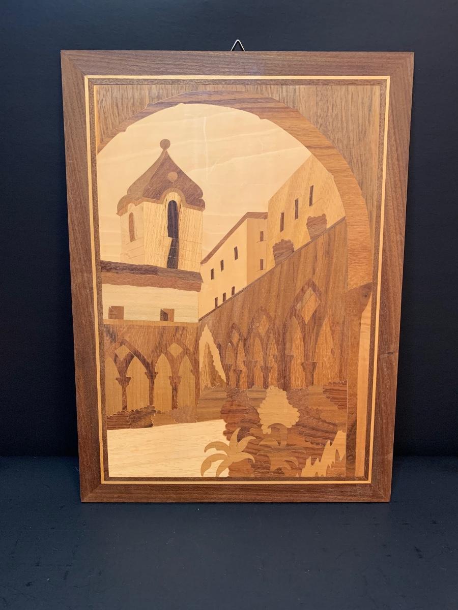 LOT 30R: Vintage Inlaid Wooden Art & Cloth/Tea Towel