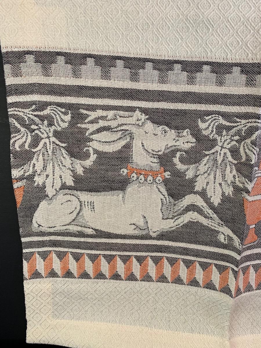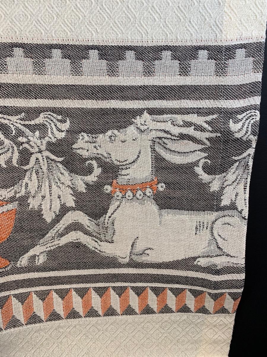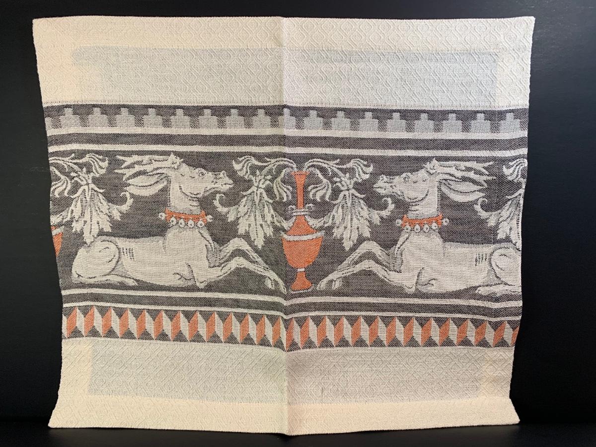 Per out client the inlaid are pieces are from Italy, 1970s. The cloth/ tea towel is designed after a church floor in Siena Italy.