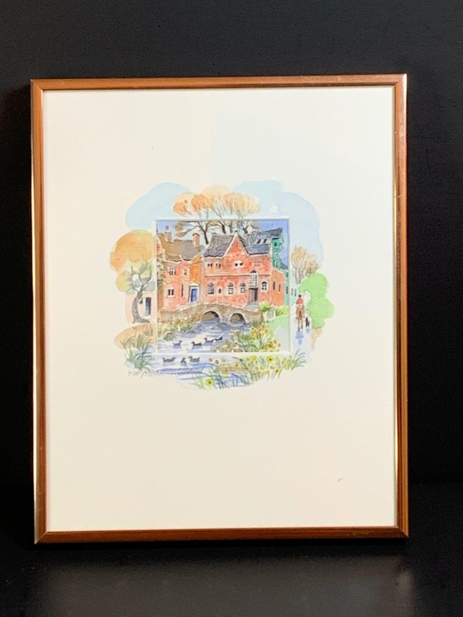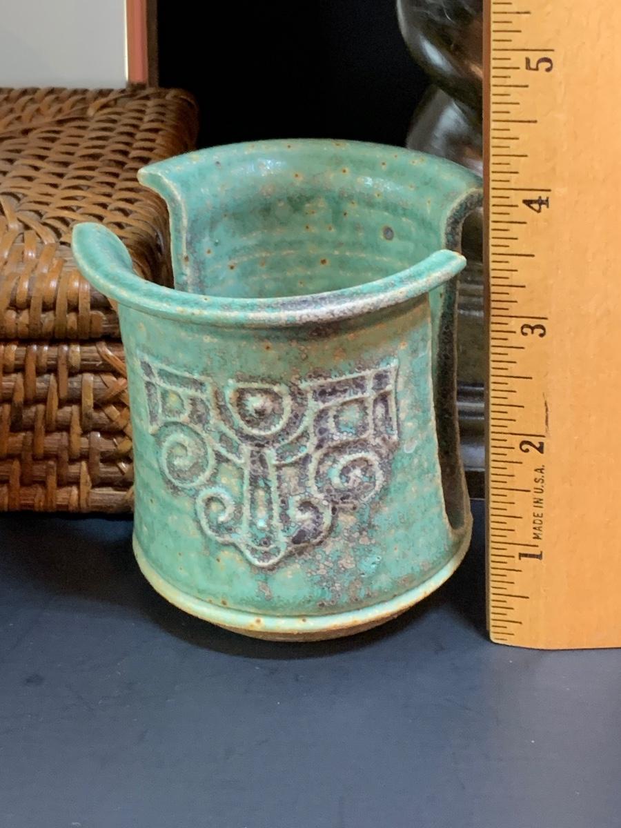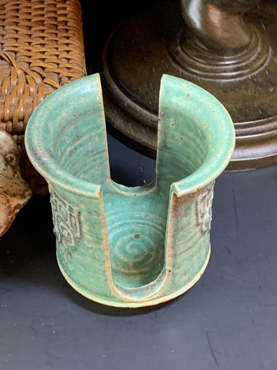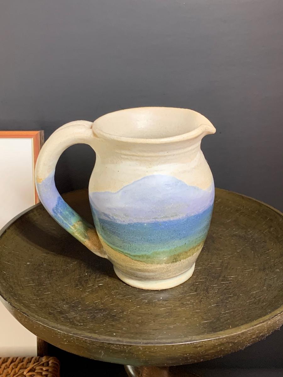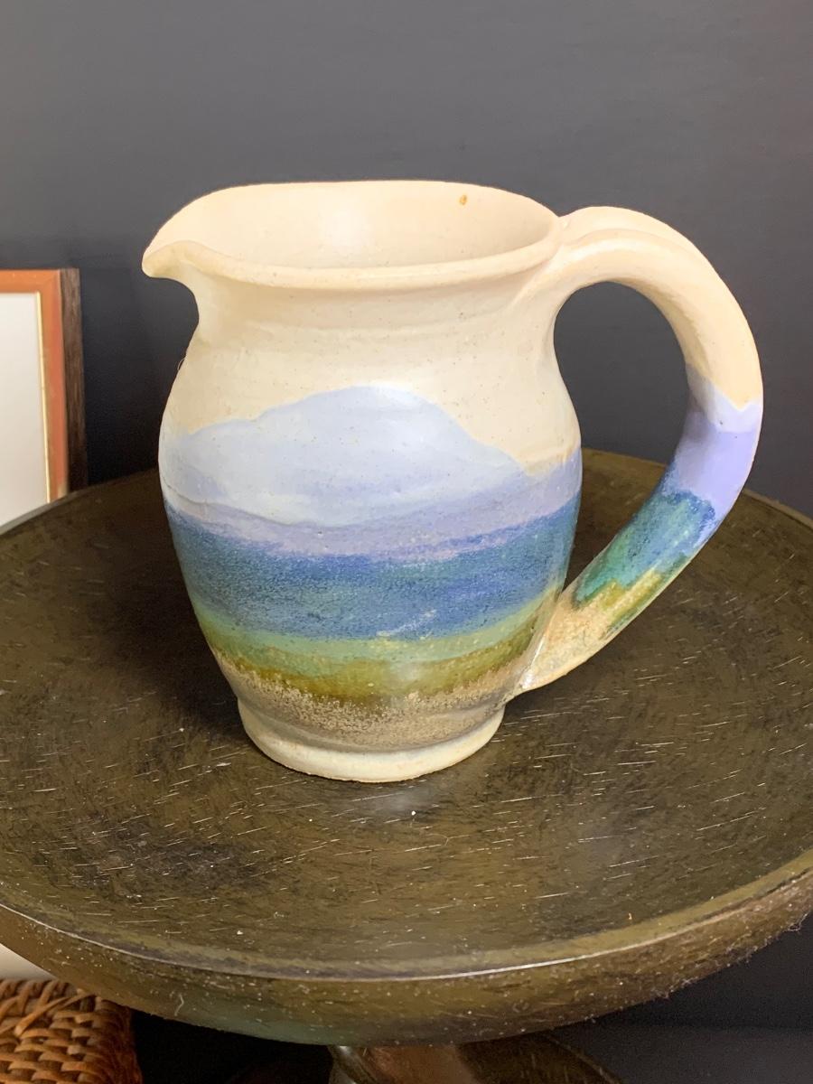LOT 33R: Pottery: Sponge Holder, Pitcher, Wall Pocket, Signed Watercolor, Pedestal Fruit Dish & More