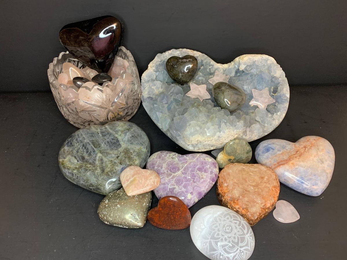 LOT 36R: Heart Shaped  Healing Crystals,Polished Stones & More