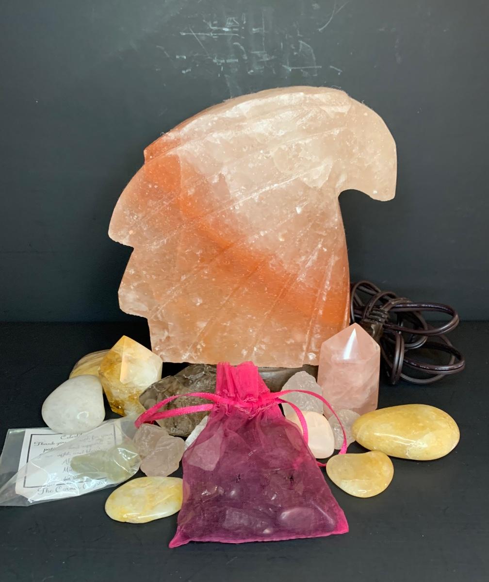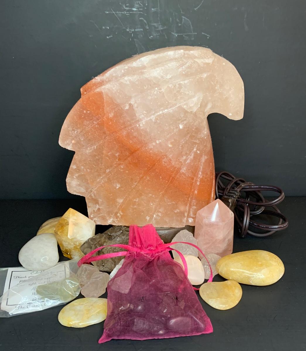 LOT 45R: Himalayan Shaped Salt Lamp & Other Natural/Polished Stones