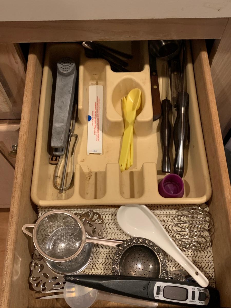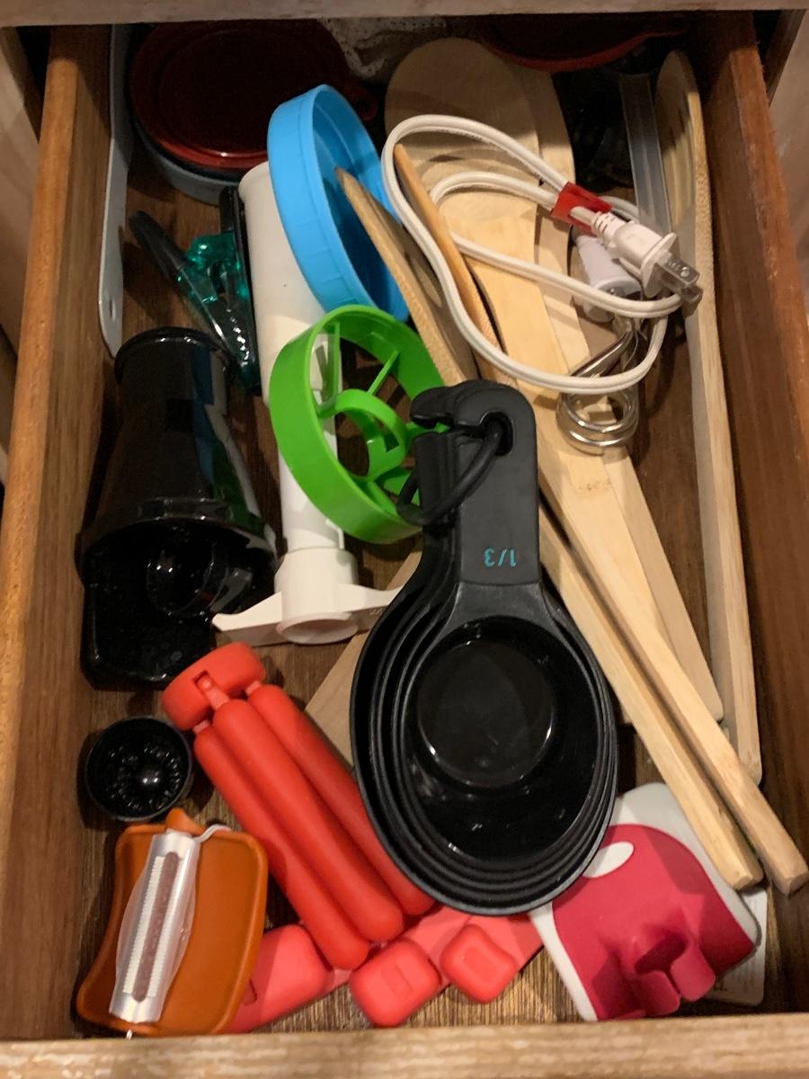 Contents of kitchen drawers and all the refrigerator magnets