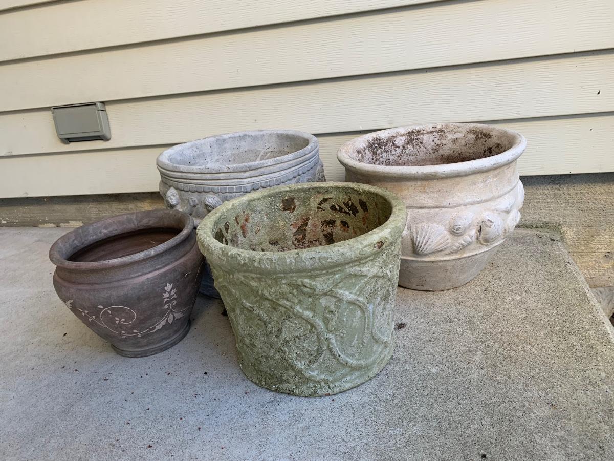 LOT 65R: Outdoor Concrete Planters: Angels, Seashells & Others