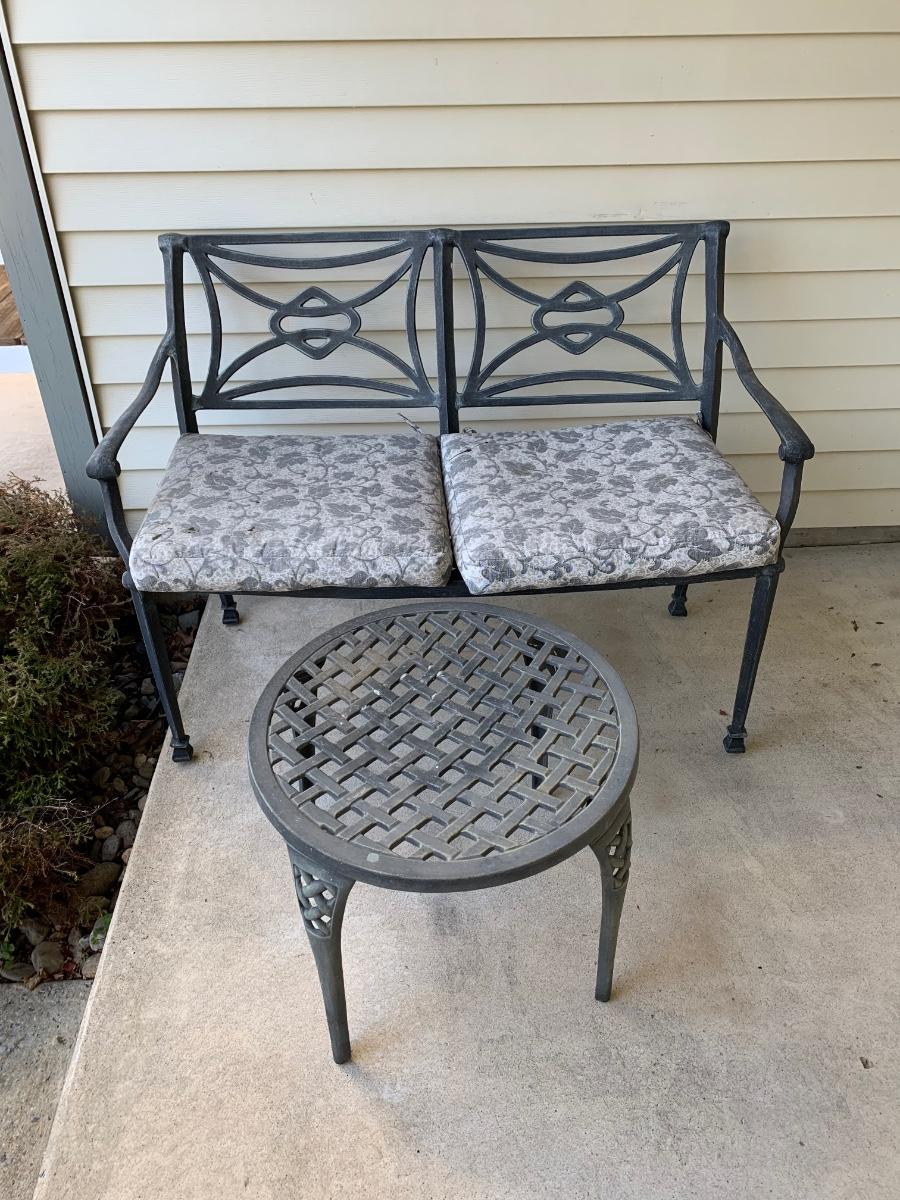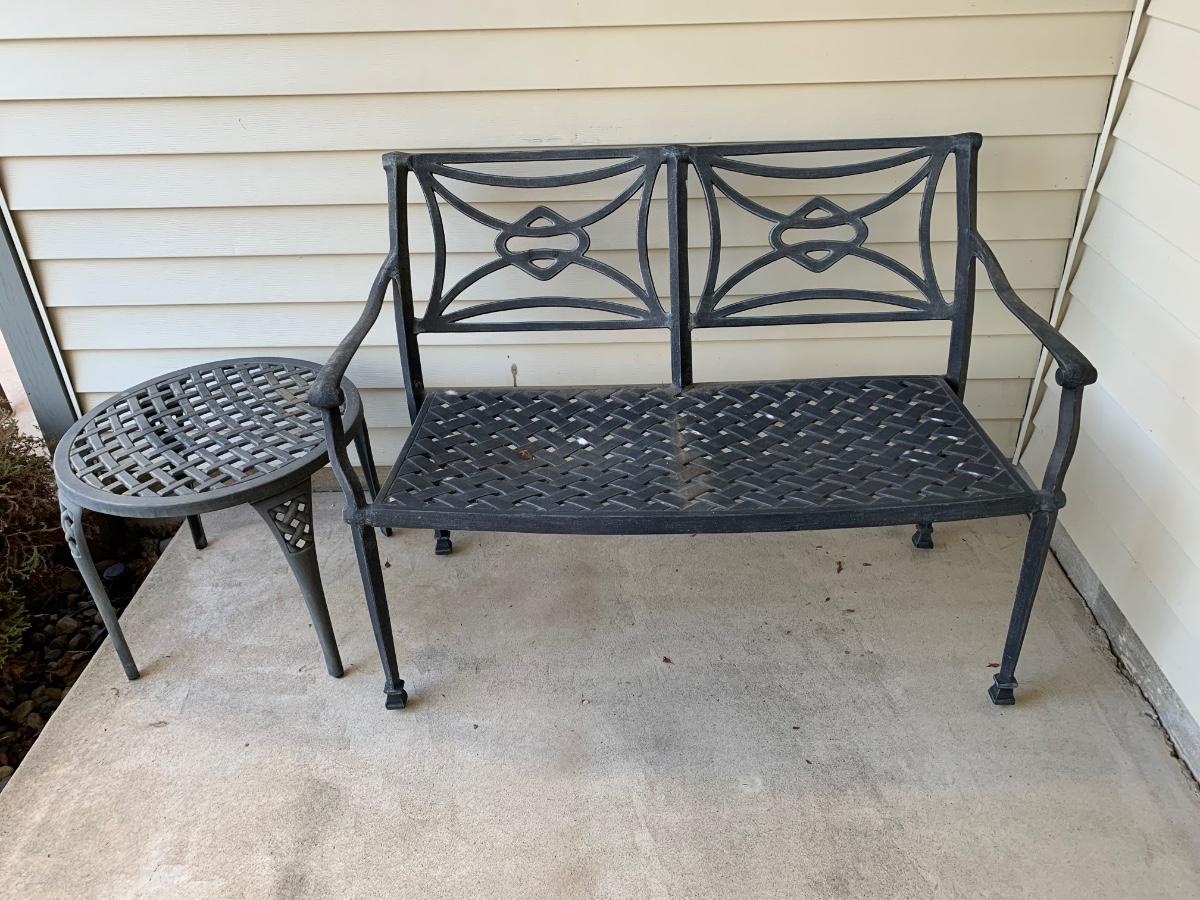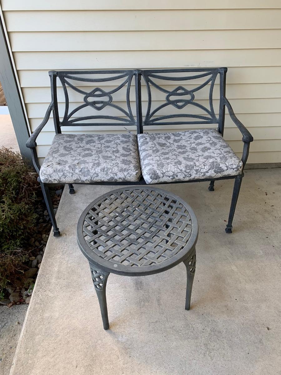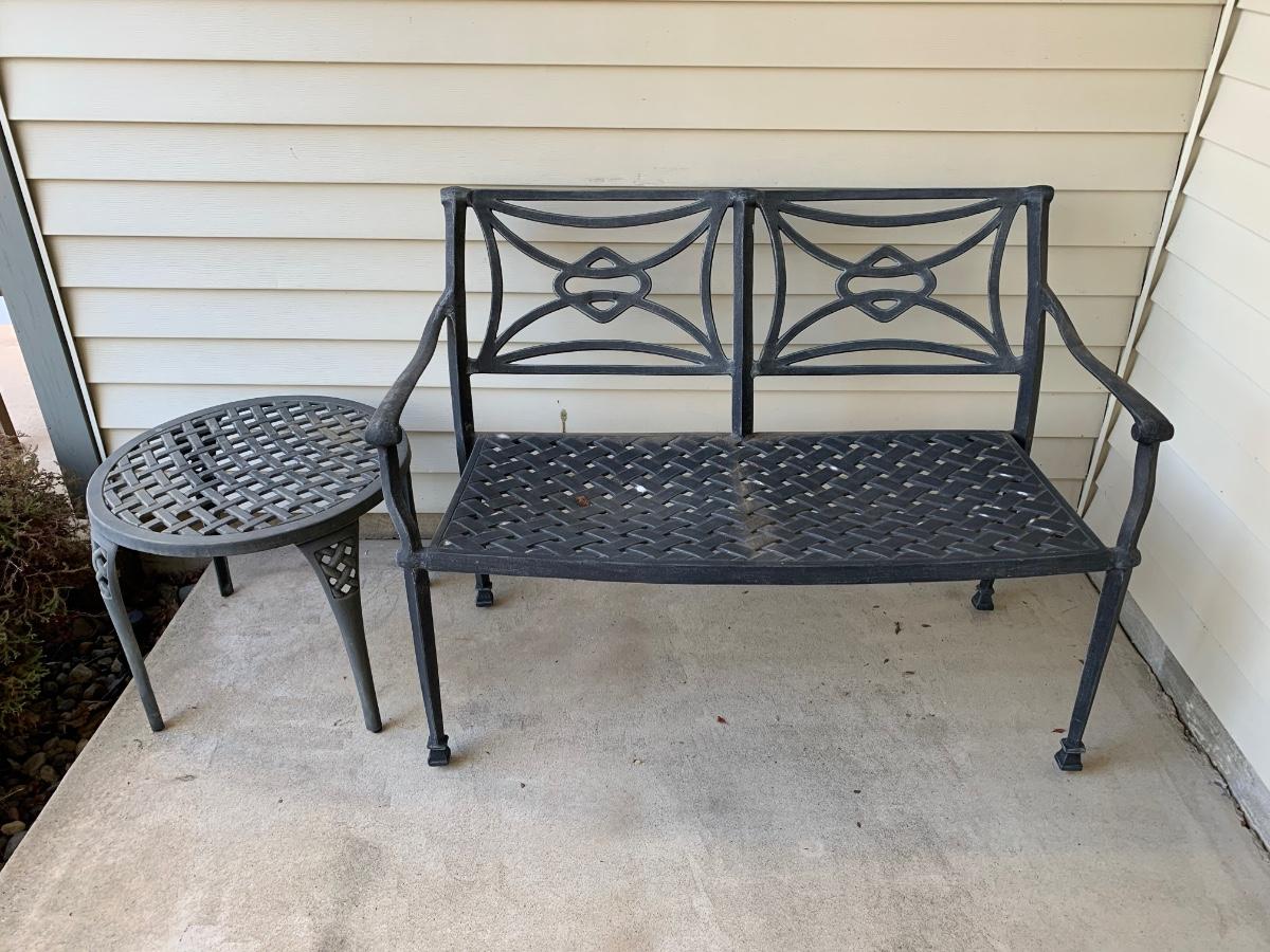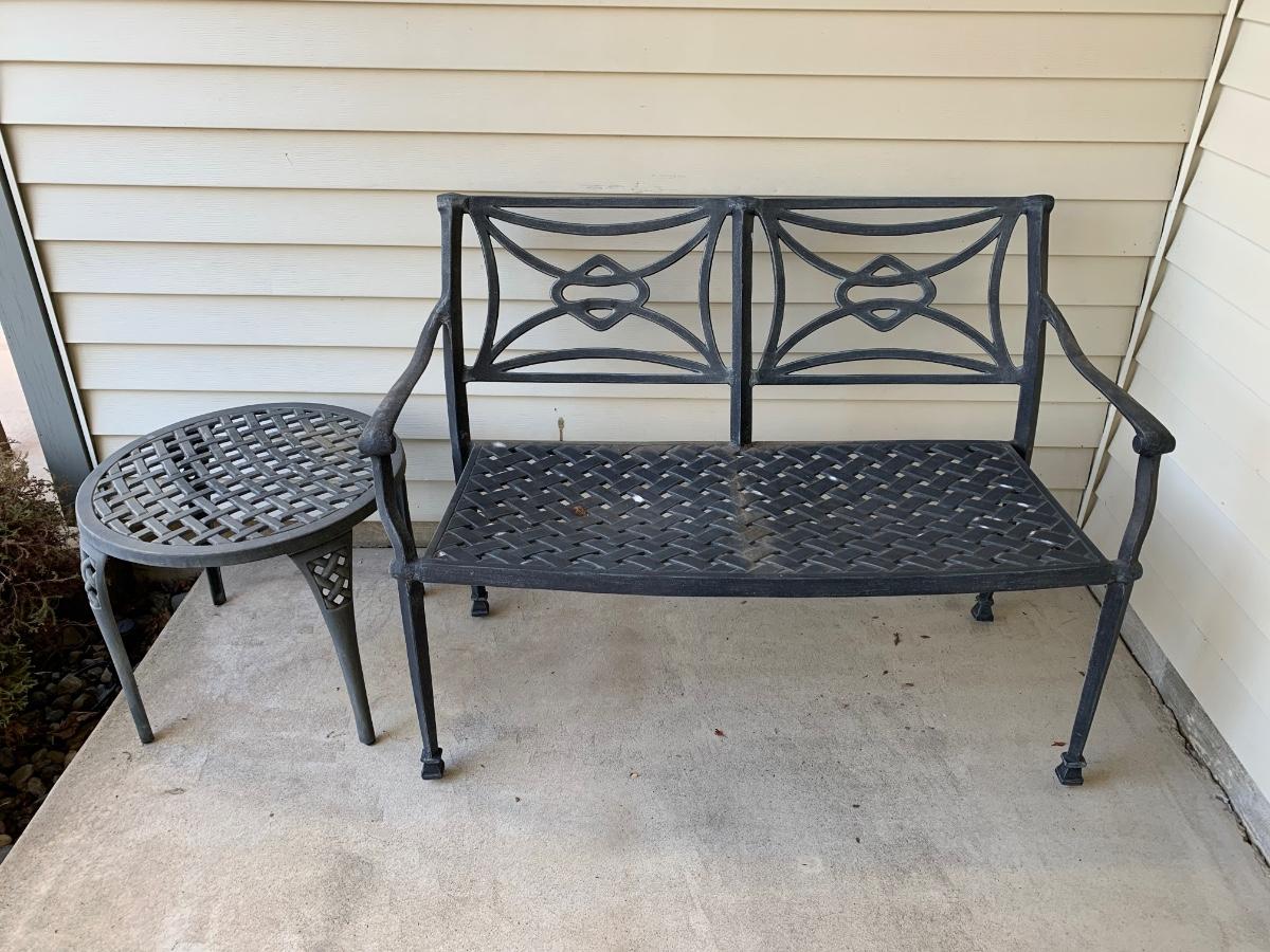 LOT 66R: Outdoor Metal Loveseat & Side Table