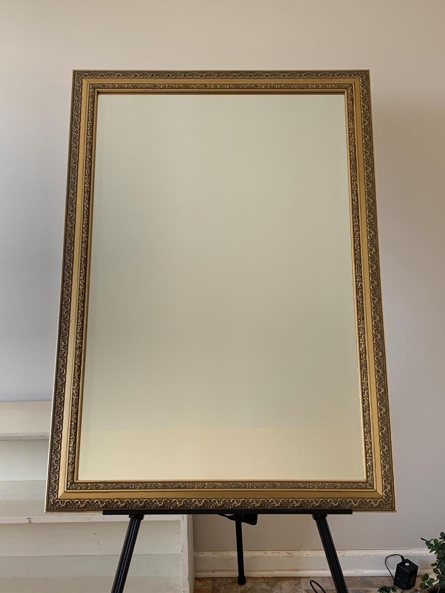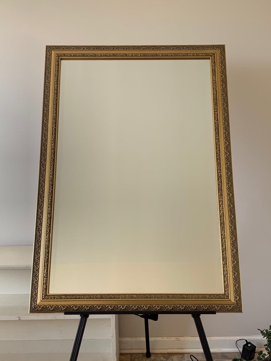 This is a large statement piece beveled mirror!! Pictures are not doing this mirror justice.