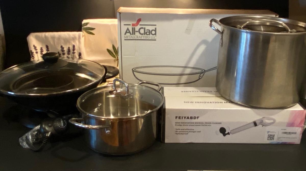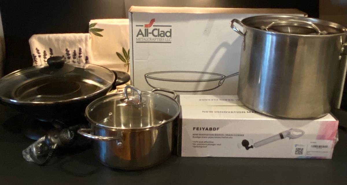 New in box pan, new in box drain cleaner. Many fun kitchen finds in excellent condition. Please see all pictures as they are the best representation of the items. The pictures show condition, measurements if taken, and what is included in the lot. Due to the large amount that we photograph and the time frame, we are not always able to take measurements. All items unless noted, are pre-owned and have been used. If you purchased furniture, you must bring help. We do not allow one person to carry large furniture out on their own. Bring help, tools and a truck for the safety of our client’s homes, and your personal safety. Any damages that result to the property including walls, and floors due to moving of the furniture will be charged to the buyer. Company policy. Thank you.