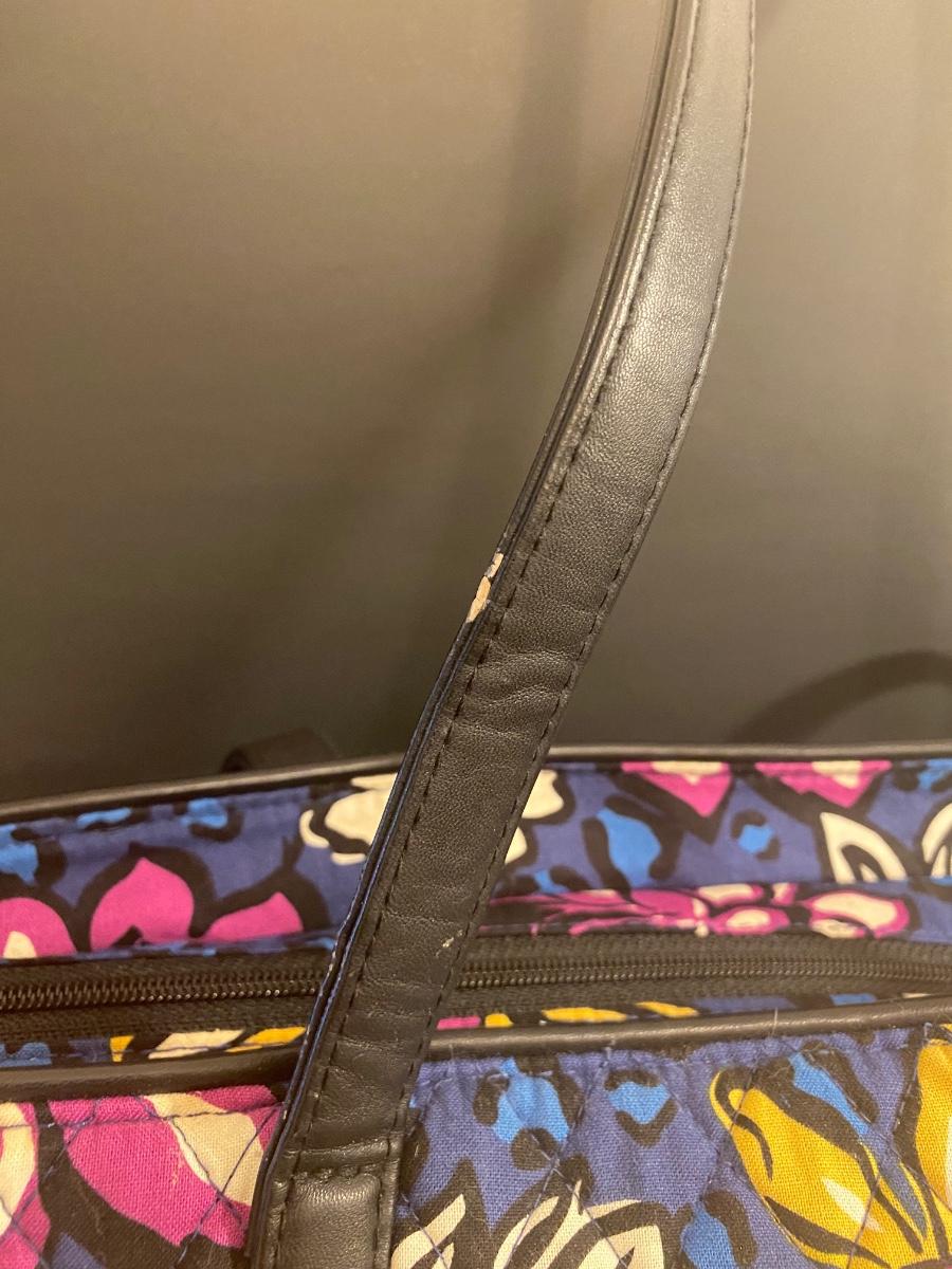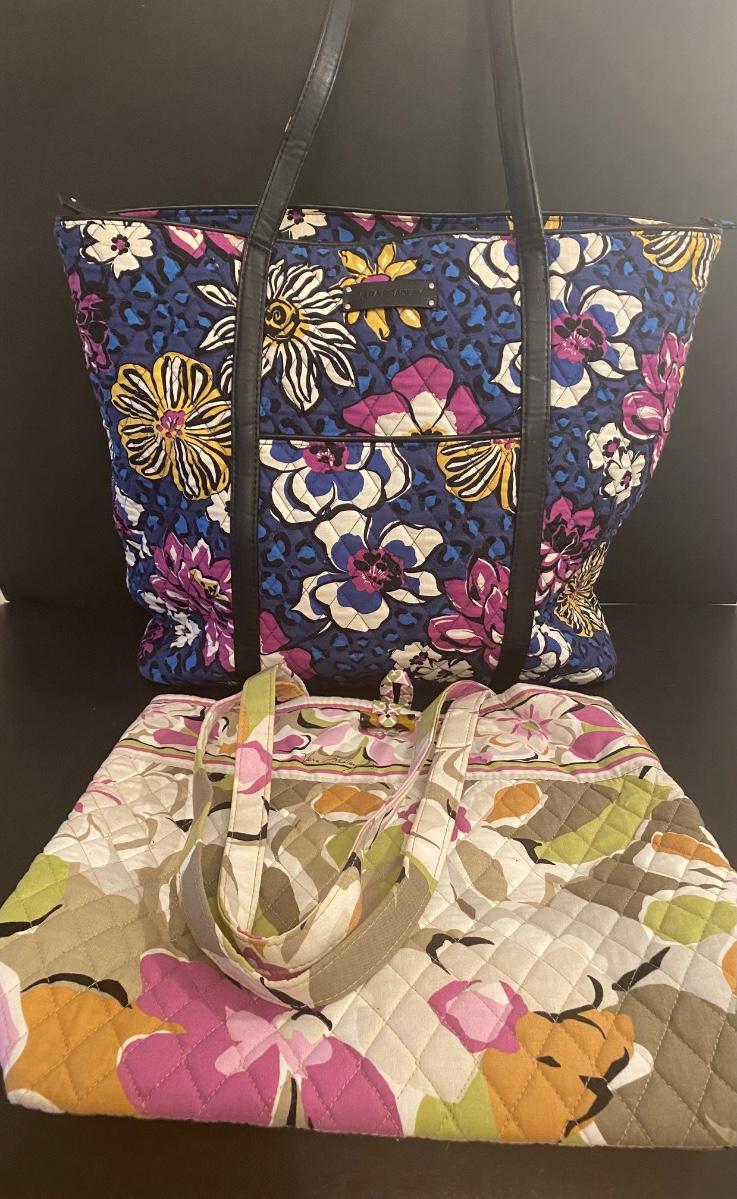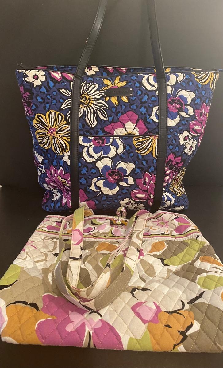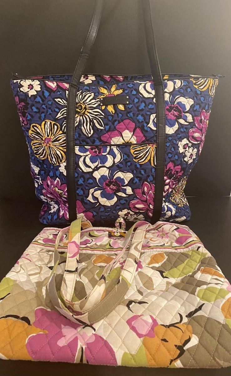 Pair of two Vera Bradley totes. Both in good used condition. Please see all pictures as they are the best representation of the items. The pictures show condition, measurements if taken, and what is included in the lot. Due to the large amount that we photograph and the time frame, we are not always able to take measurements. All items unless noted, are pre-owned and have been used. If you purchased furniture, you must bring help. We do not allow one person to carry large furniture out on their own. Bring help, tools and a truck for the safety of our client’s homes, and your personal safety. Any damages that result to the property including walls, and floors due to moving of the furniture will be charged to the buyer. Company policy. Thank you.